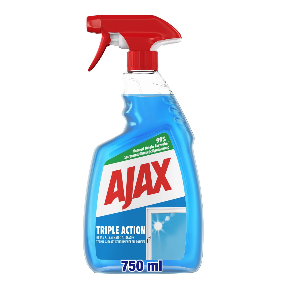 Το Ajax ανανεώνεται με καινούργια σύνθεση, 99% φυσικής προέλευσης προσφέροντας 100% Τζάμια Αόρατα. 100% τζάμια αόρατα χωρίς στίγματα. 99% συστατικά φυσικής προέλευσης. 99% βιοδιασπώμενη σύνθεση. Ανακυκλώσιμο μπουκάλι και αντλία. Παράγεται υπεύθυνα.