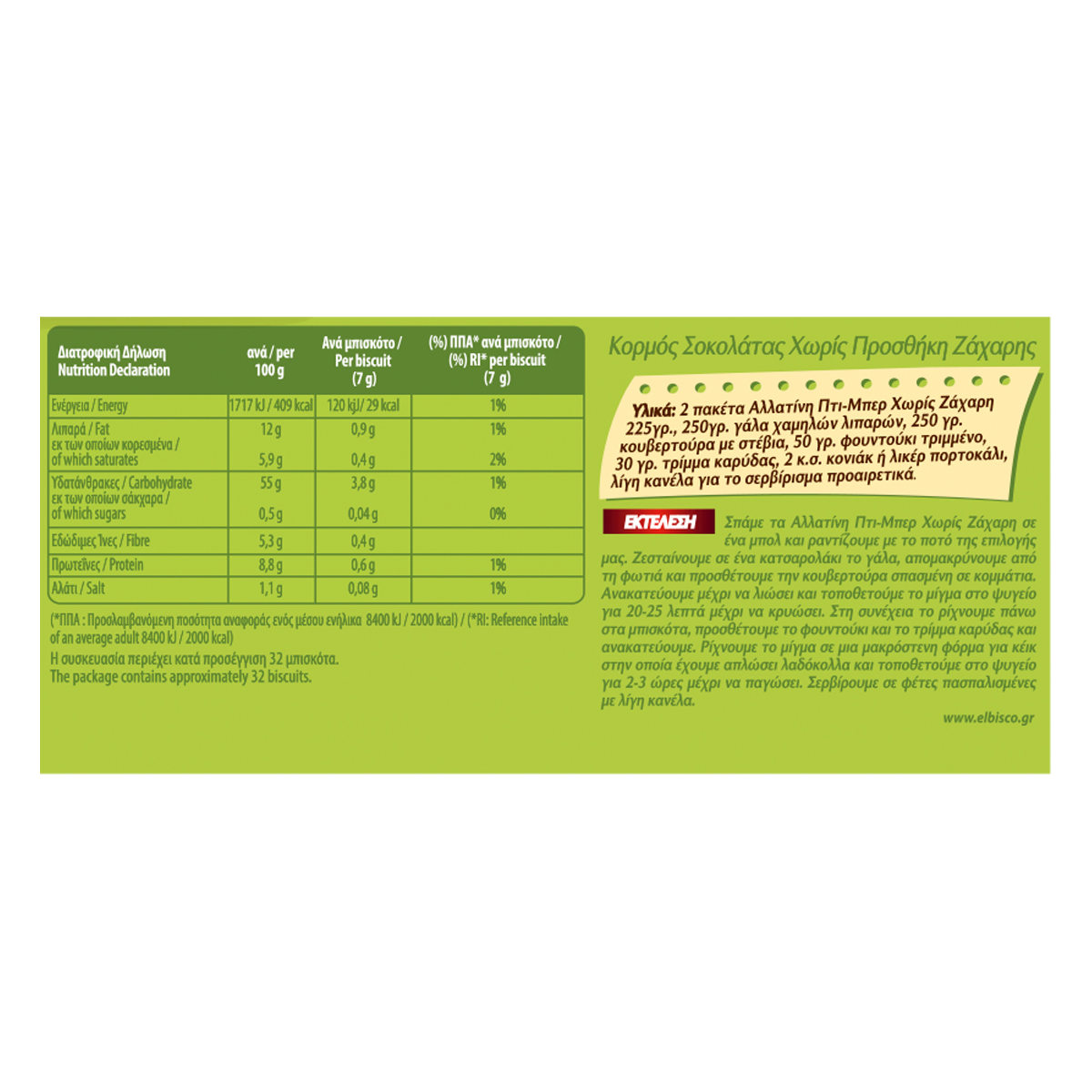| Ενέργεια (ανά 100g) | 409 kcal |