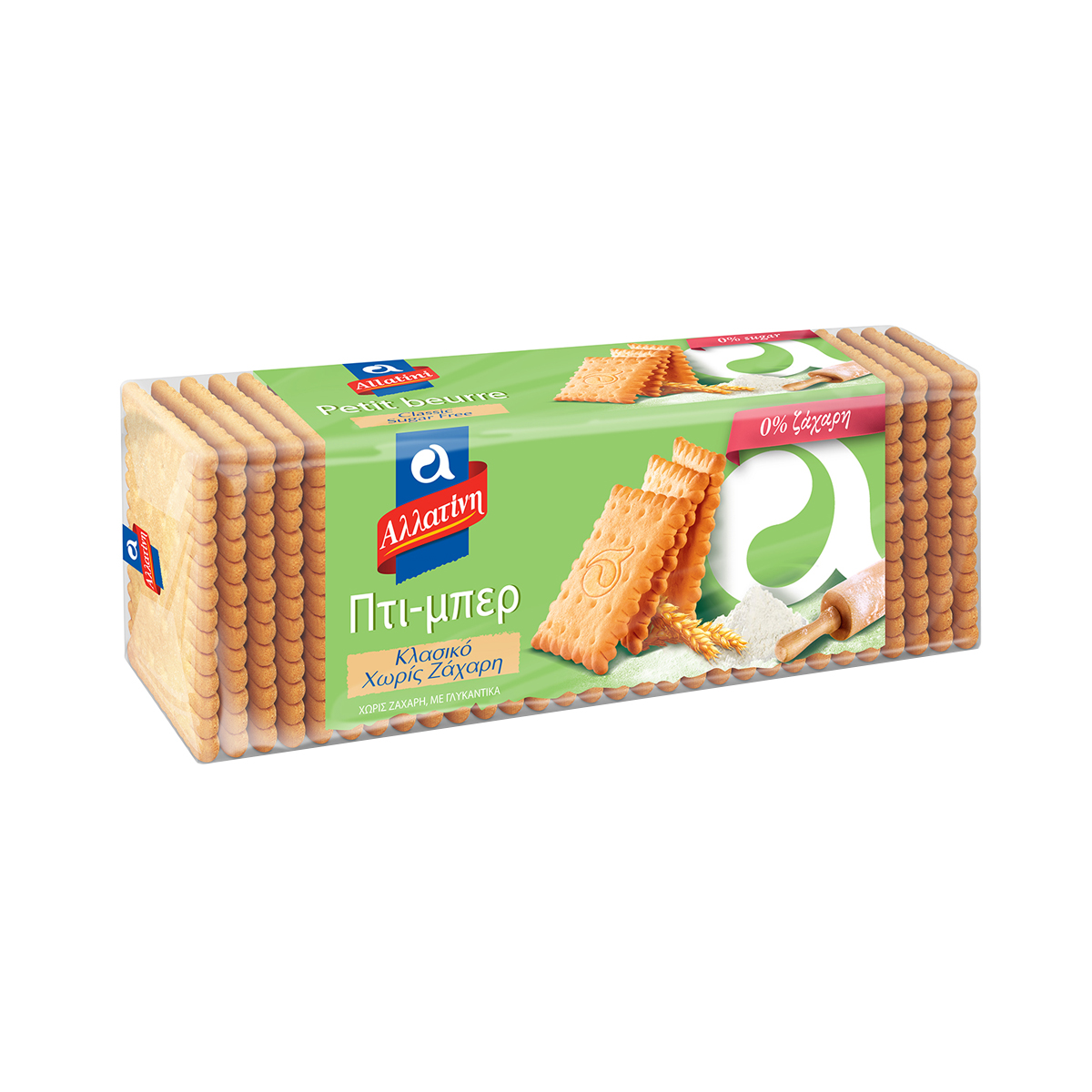 Εδώ και πολλά χρόνια προσφέρουμε σε κάθε ελληνικό σπίτι προϊόντα Αλλατίνη φτιαγμένα με μεράκι και φροντίδα. Επιλέγουμε συνειδητά να πρεσβεύουμε την Καλοσύνη, μία από τις διαχρονικές μας αξίες, που βρίσκεται στη βάση της σύγχρονης, ισορροπημένης διατροφής. Τα κλασικά & αγαπημένα μπισκότα Πτι-Μπερ, τώρα και Χωρίς Ζάχαρη!