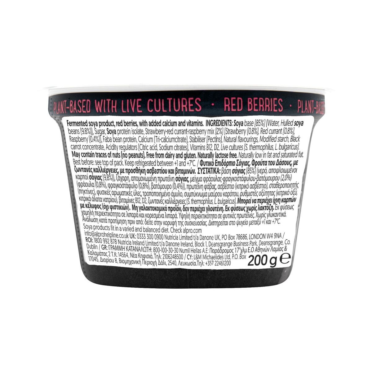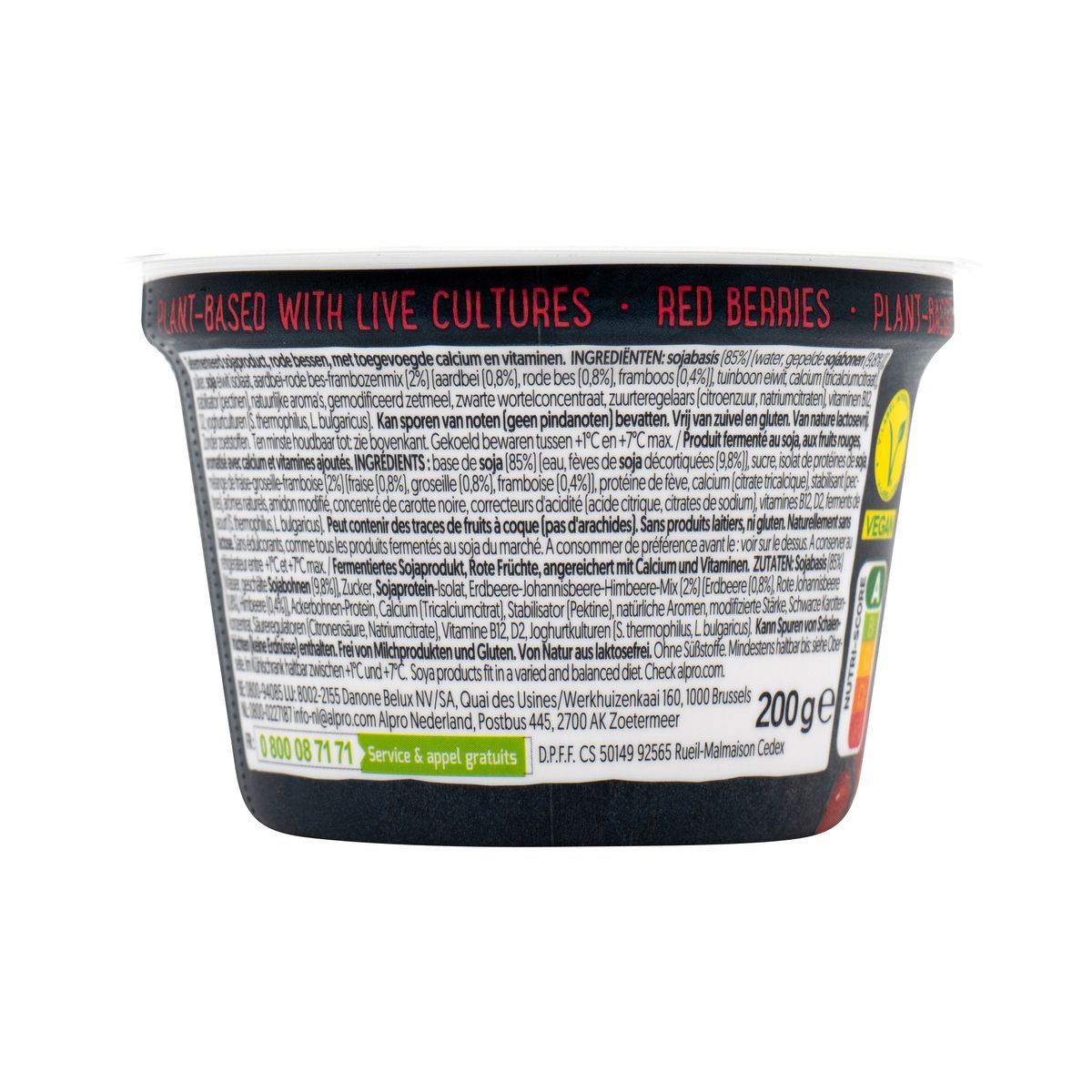 Φυτικό επιδόρπιο σόγιας, φρούτα του δάσους με ζωντανές καλλιέργειες, με προσθήκη ασβεστίου και βιταμινών. Εκ φύσεως χαμηλή περιεκτικότητα σε λιπαρά και κορεσμένα λιπαρά. Υψηλή περιεκτικότητα σε φυτικές πρωτεΐνες. Χωρίς γλυκαντικά.