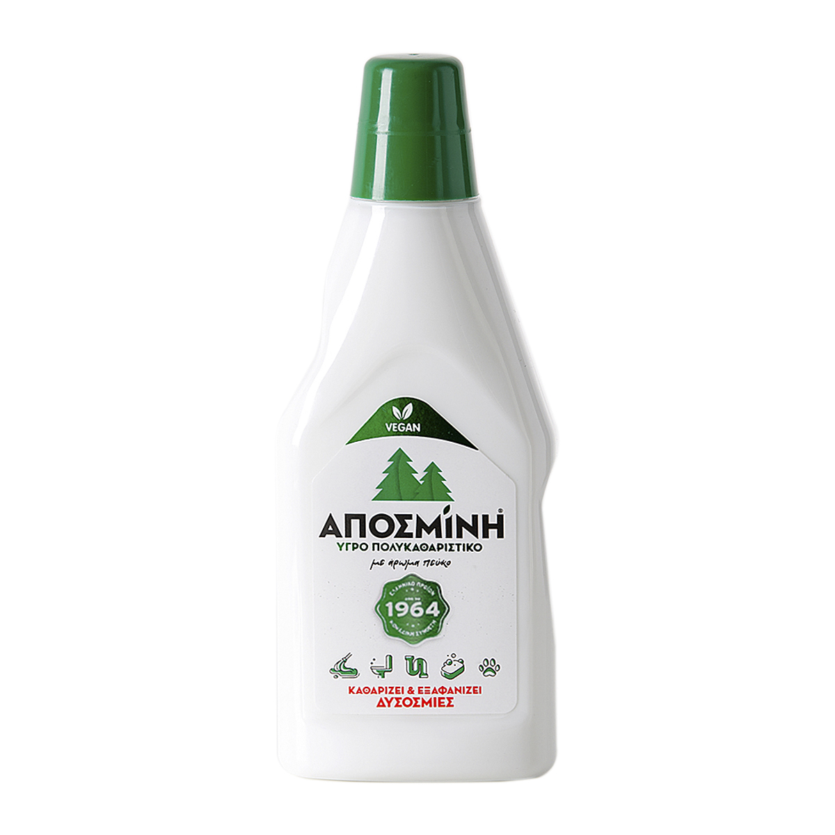 Η Αποσμίνη είναι υγρό αποσμητικό σκεύασμα. Χρησιμοποιείται στο σφουγγάρισμα, την λεκάνη, το νιπτήρα, το νεροχύτη, τα σιφώνια και όπου αλλού μπορεί να υπάρχει δυσοσμία. Αραιωμένο ή μη, αρκεί ελάχιστη ποσότητα ώστε να εξαφανίσει κάθε δυσοσμία και παράλληλα να αρωματίσει το χώρο, αφήνοντας ένα ευωδιαστό άρωμα πεύκου. Περιέχει μη ιονικούς γαλακτοματοποιητές και αρώματα, ενώ κατά το σφουγγάρισμα έχει και αντιστατική ιδιότητα.