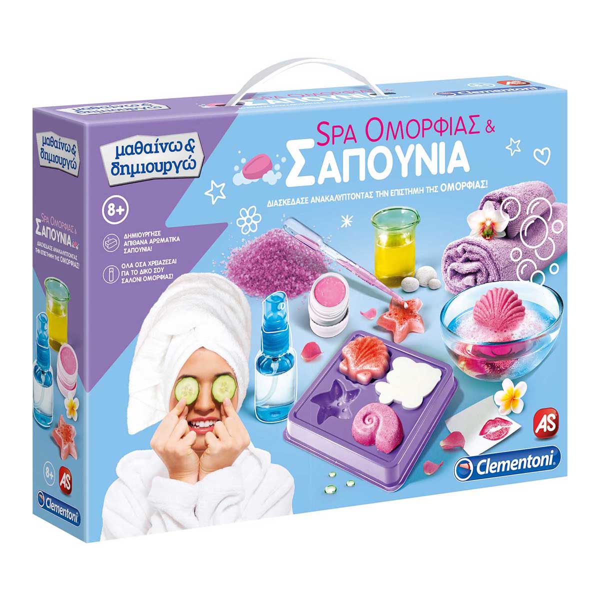 Φτιάξε τα δικά σου καλλυντικά και ζήσε την απόλυτη εμπειρία spa! Ένα πραγματικό επιστημονικό εργαστήριο για να φτιάξεις μόνη σου την δική σου σειρά σαπουνιών με υπέροχες μυρωδάτες δημιουργίες! Το σετ περιέχει πολλά και πλούσια συστατικά για να φτιάξεις το δικό σου άρωμα, αρωματικό σαπούνι, σαπούνι με λουλούδια, lip balm, scrub σώματος, μάσκα προσώπου, αρωματικά άλατα μπάνιου, αρωματικό λάδι σώματος, αρωματικά bath bombs, αρωματικό νερό και θεραπεία ματιών με αγγούρι. Το σετ αυτό θα σε καθοδηγήσει στην ανακάλυψη της επιστήμης των καλλυντικών, μέσα από την δημιουργία προϊόντων ομορφιάς με απολύτως ασφαλή υλικά! Χρησιμοποιώντας τα συστατικά και τα εργαλεία που παρέχονται στη συσκευασία, μπορείς να δημιουργήσεις ένα πραγματικό spa!