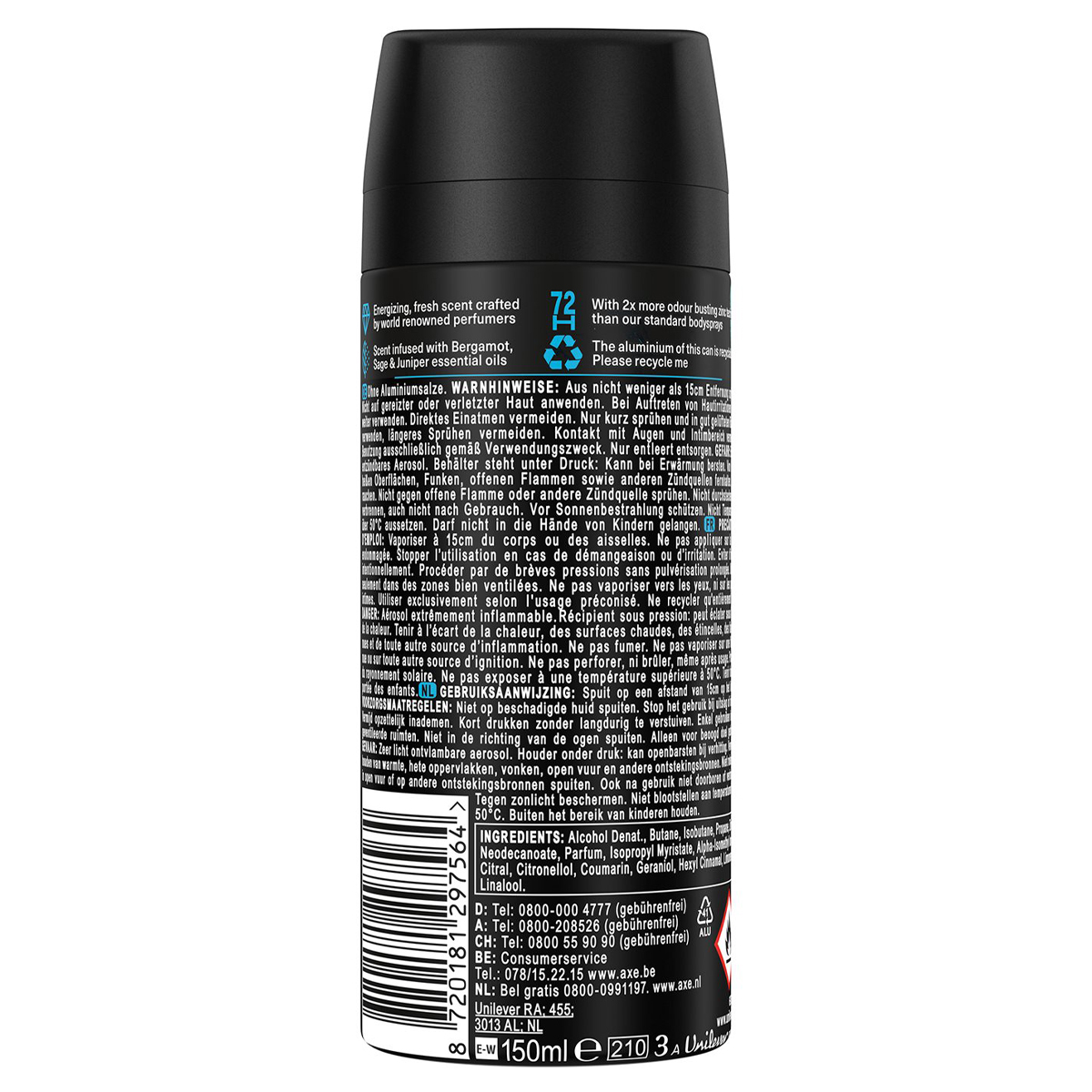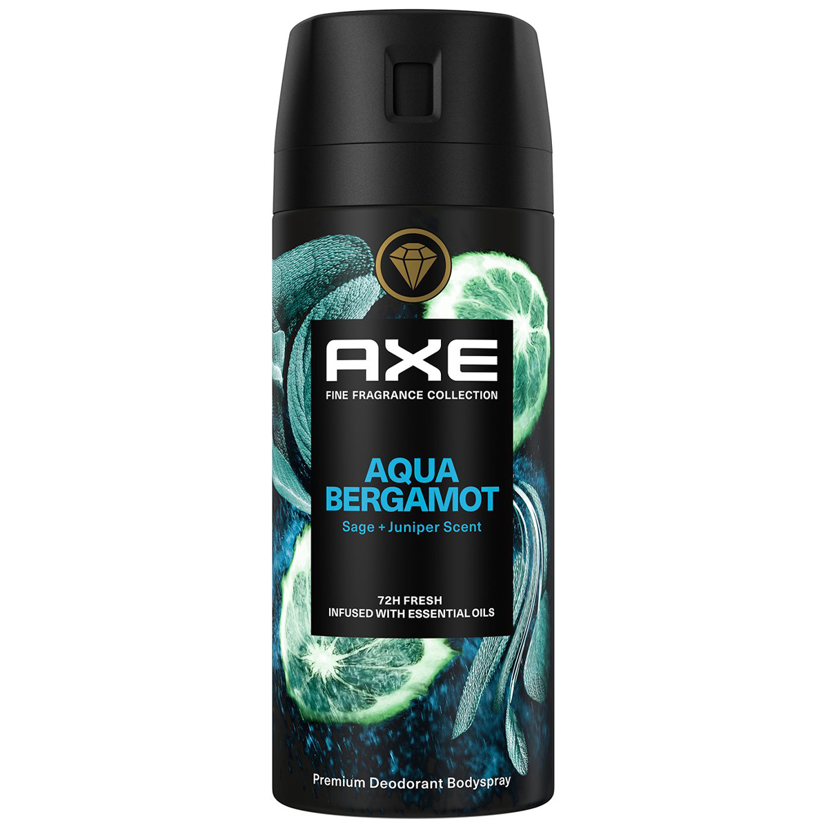 Αποσμητικό AXE Aqua Bergamot για προστασία απο τις οσμές έως 72 ώρες, αίσθηση φρεσκάδας και ασυναγώνιστης αυτοπεποίθησης. Χωρίς αλουμίνιο, εμπλουτισμένο με αιθέρια έλαια περγαμόντο και φασκόμηλο.