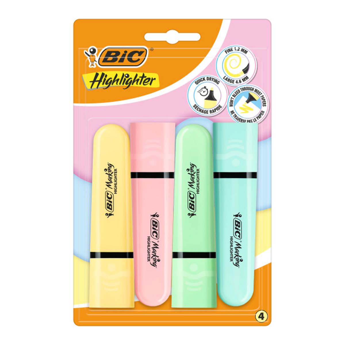 Bic Flat Highlighter Μαρκαδόροι Υπογράμμισης 4 Τεμάχια