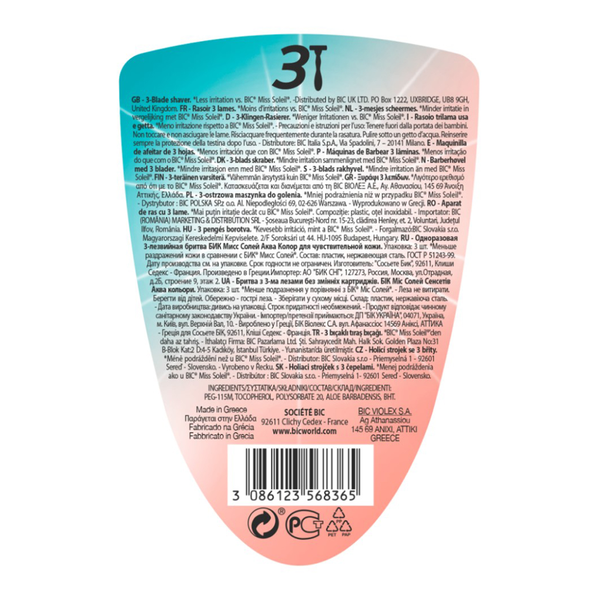 Bic Miss Soleil Ξυραφάκια Μιας Χρήσης Sensitive Aqua Colours 3 Τεμάχια