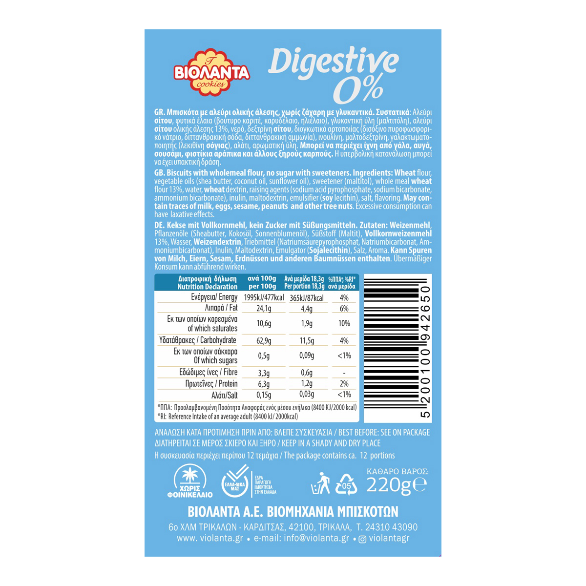 Βιολάντα Μπισκότα Digestive Χωρίς Ζάχαρη 220 gr