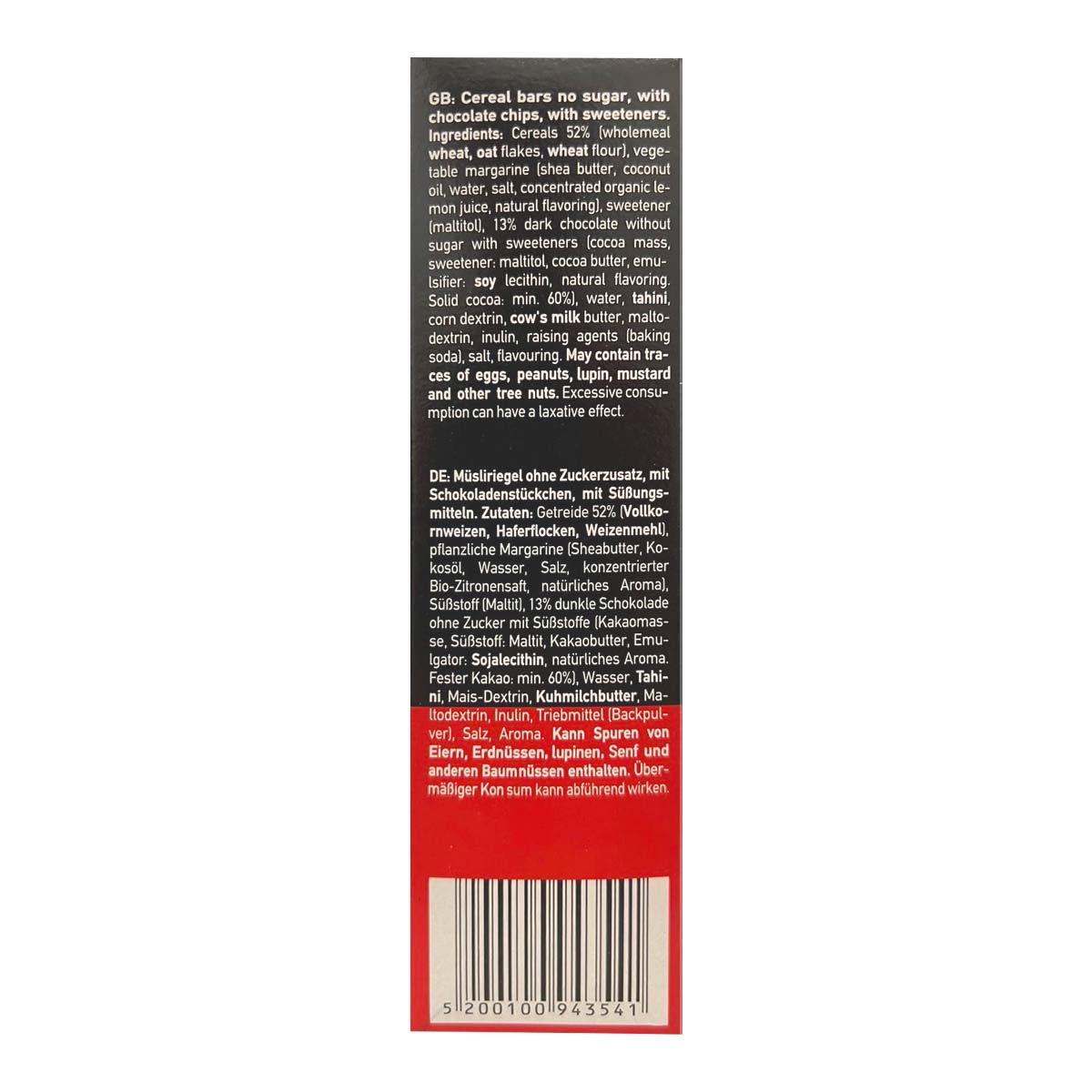 Μπάρα δημητριακών με κομμάτια μαύρης σοκολάτας. Ένα snack για όλες τις ώρες της ημέρας.