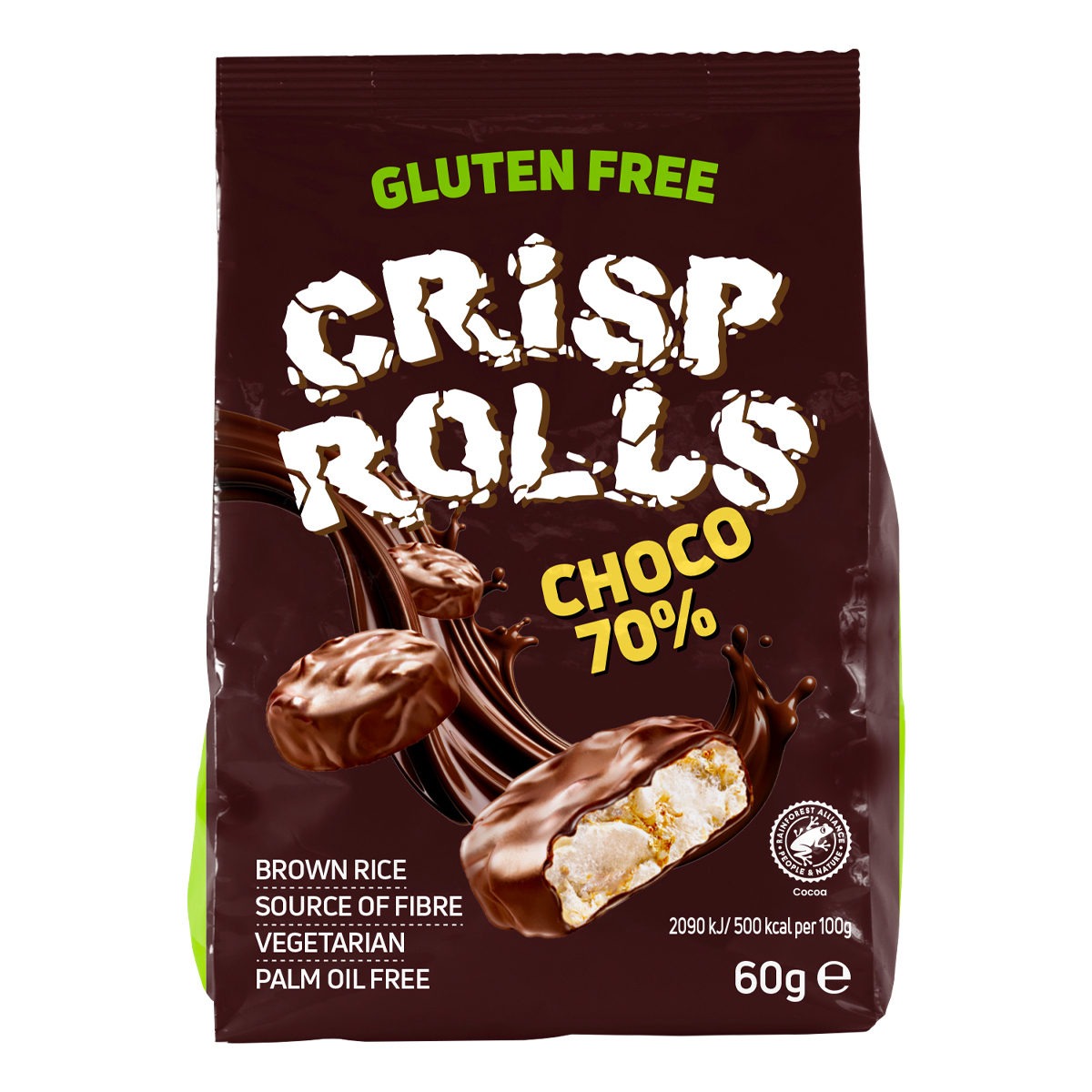 Crisp Rolls Ρυζογκοφρέτες Με Επικάλυψη Μαύρης Σοκολάτας Χωρίς Γλουτένη 60 gr