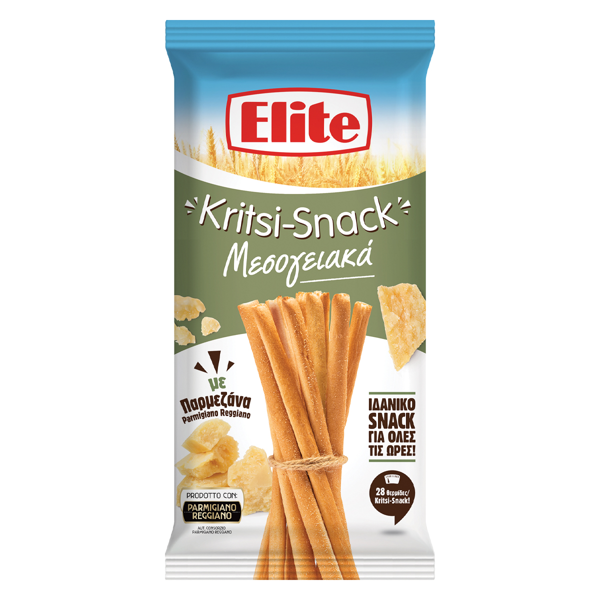Τα Elite Kritsi-Snack Μεσογειακά, γευστικά και τραγανά, αποτελούν ιδανική επιλογή snack για όλες τις ώρες! Απολαύστε τα με ντομάτα & ρίγανη, με 28 θερμίδες ανά Kritsi-Snack!