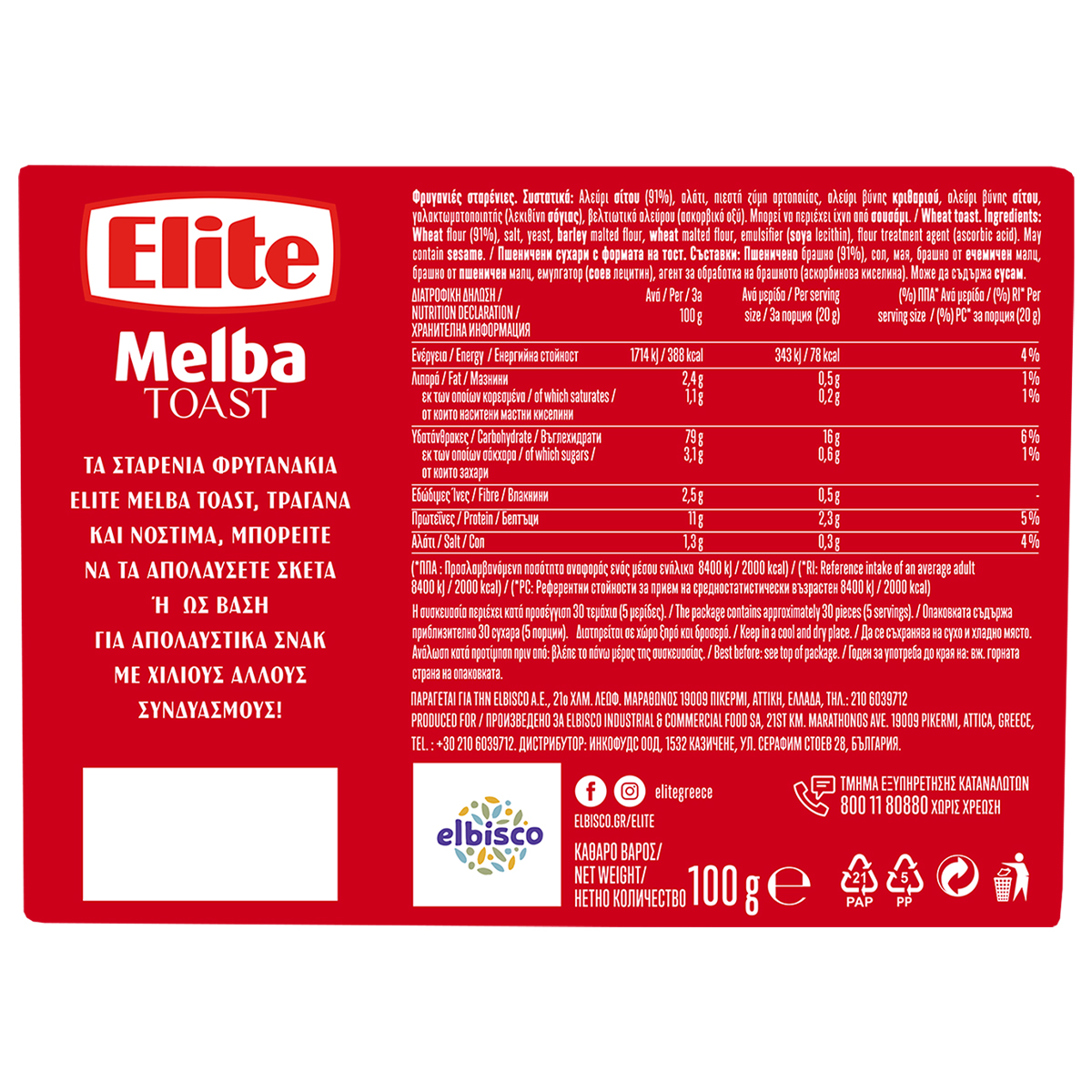Τα Σταρένια φρυγανάκια Elite Melba Toast, τραγανά και νόστιμα, μπορείτε να τα απολαύσετε σκέτα ή ως βάση για απολαυστικά σνακ με χίλιους άλλους συνδυασμούς!