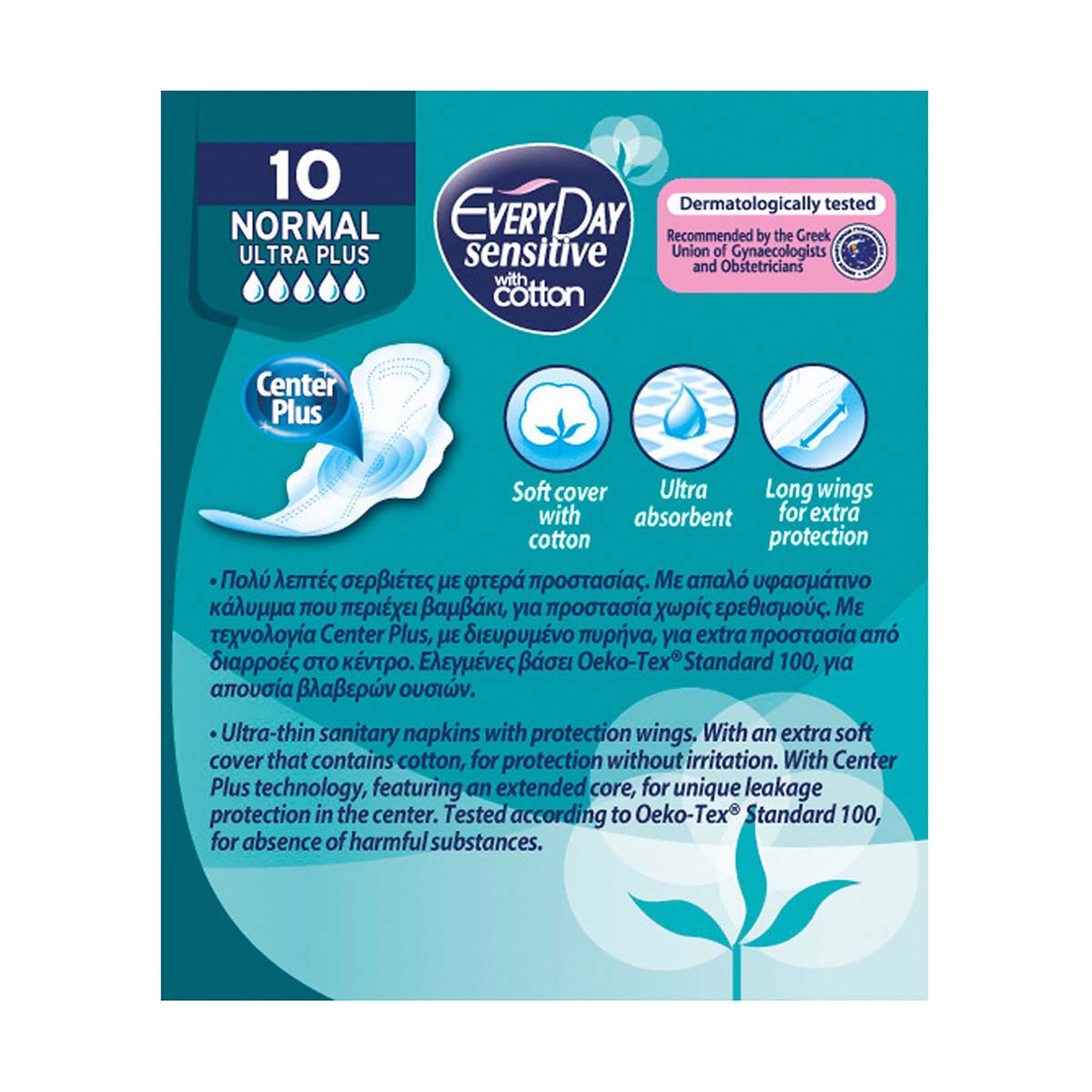 Κανονικού μήκους λεπτές σερβιέτες, με φτερά προστασίας. Με υγιεινό υφασμάτινο κάλυμμα που περιέχει βαμβάκι και επιτρέπει στο δέρμα να αναπνέει. Με την επαναστατική τεχνολογία Center Plus, με διευρυμένο πυρήνα, που εξασφαλίζει έως και 30% μεγαλύτερη απορροφητική επιφάνεια στο κέντρο της σερβιέτας, σε σχέση με άλλες λεπτές σερβιέτες, για απίστευτη προστασία από διαρροές, εκεί που χρειάζεται περισσότερο. Δερματολογικά ελεγμένες.