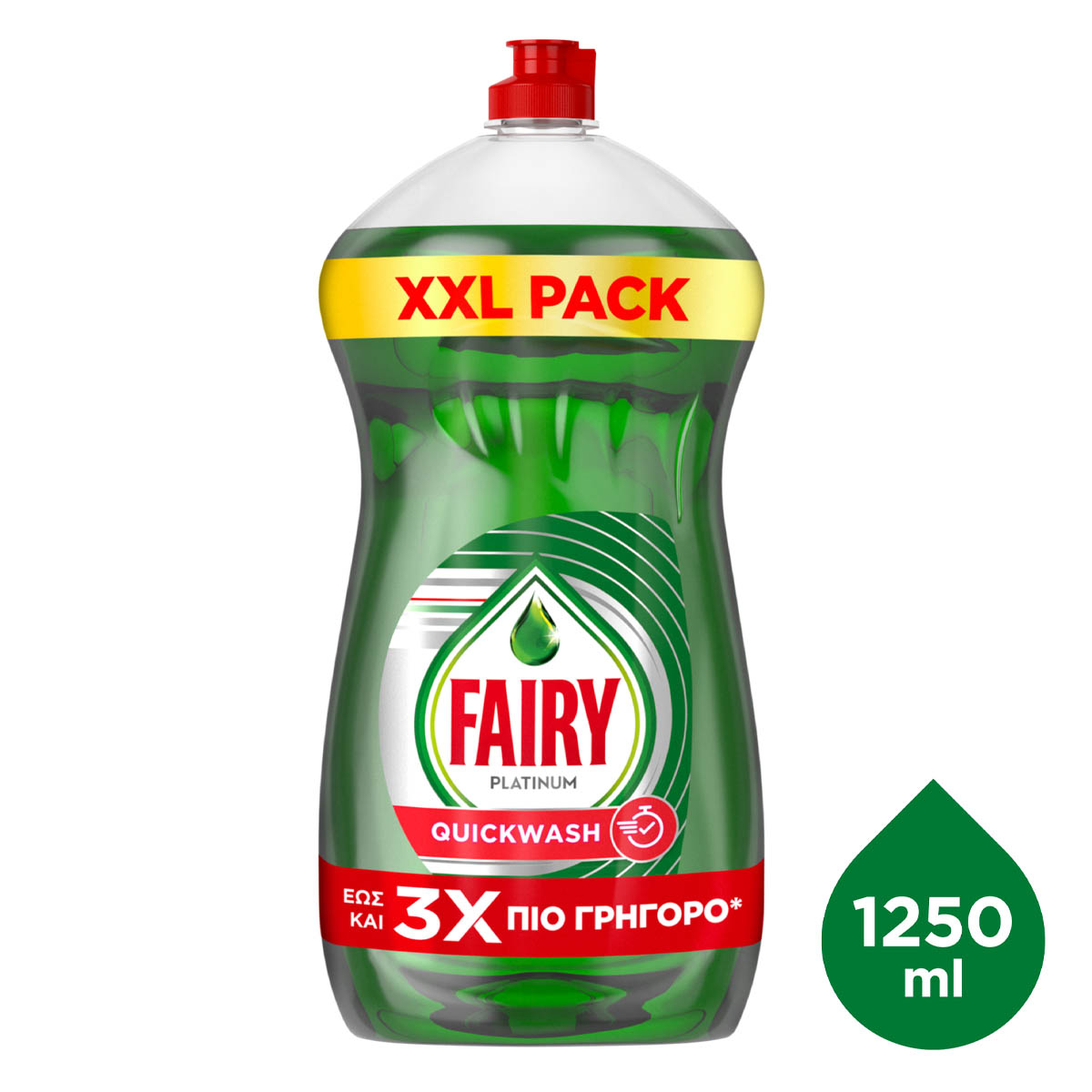 Το υγρό πιάτων Fairy Platinum Quickwash προσφέρει την καλύτερη καθαριότητα του Fairy και σας βοηθά να βγείτε από την κουζίνα πιο γρήγορα, προσφέροντάς σας γρήγορο και εύκολο καθάρισμα. Κάθε σταγόνα Fairy διεισδύει γρήγορα και αποδυναμώνει τα υπολείμματα τροφών στα πιάτα, αφήνοντας άψογα αποτελέσματα ενάντια και στα πιο σκληρά λίπη. Και μάλιστα, σε λιγότερο χρόνο και με λιγότερη προσπάθεια.