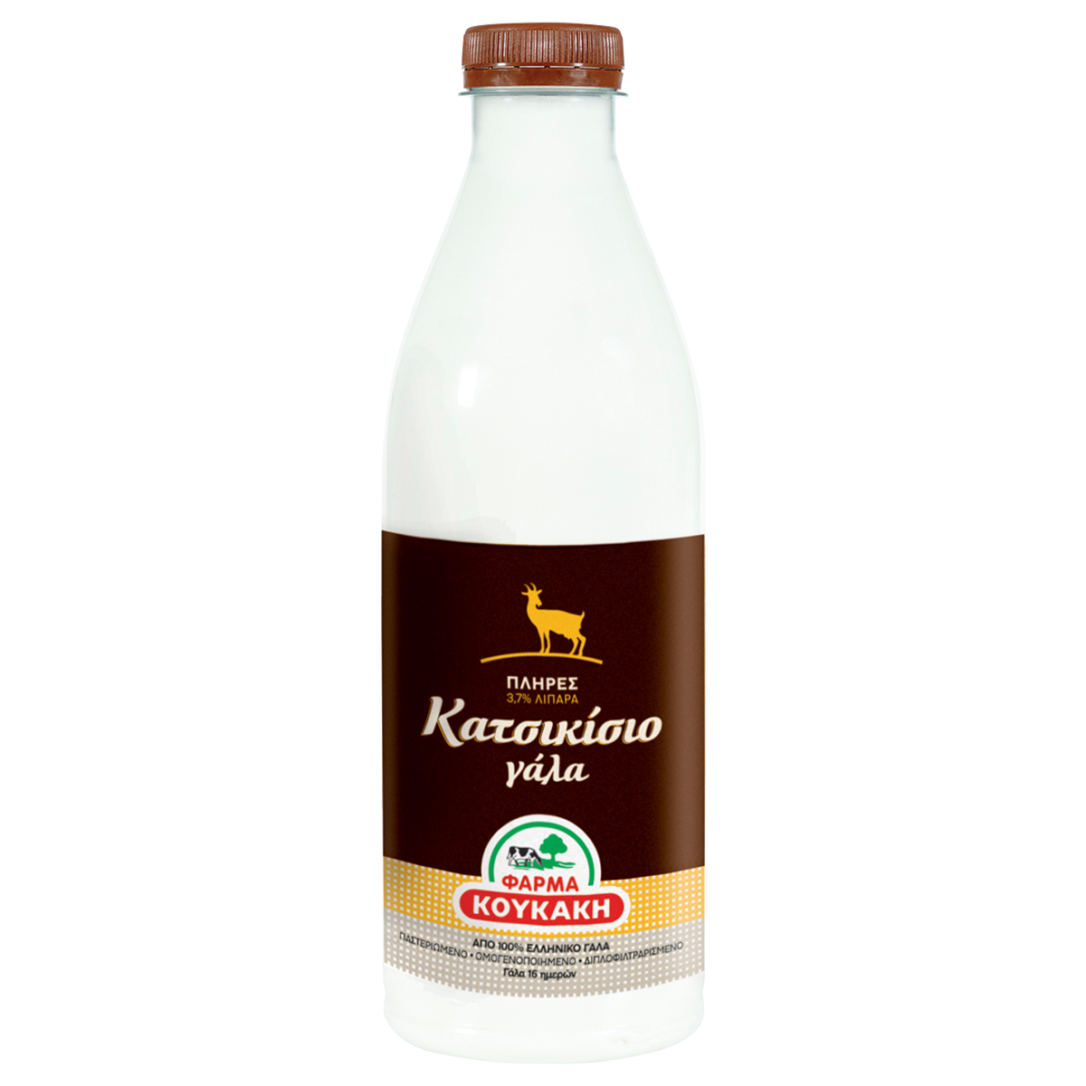 Πλήρες διπλοφιλτραρισμένο, ομογενοποιημένο και θερμικά επεξεργασμένο σε θερμοκρασία παστερίωσης, κατσικίσιο γάλα.