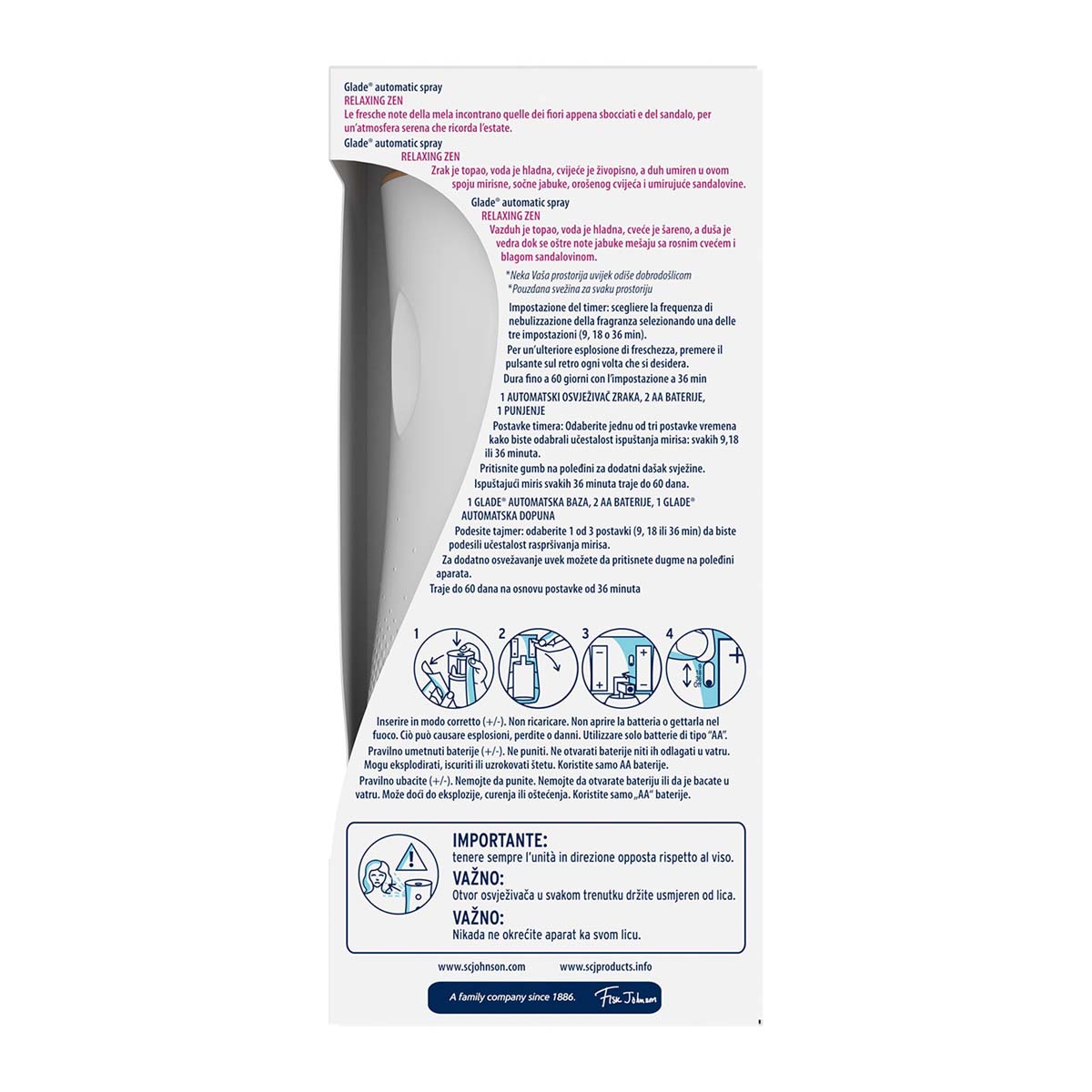 Το Glade® Automatic Spray προσφέρει υπέροχο άρωμα τη μια εβδομάδα μετά την άλλη, αυτόματα. Με 2 τρόπους ψεκασμού: 1. Ρύθμιση χρονοδιακόπτη 2. Κουμπί extra ψεκασμού. RELAXING ZEN: Η θερμότητα του αέρα,η δροσιά του νερού και το αναζωογονητικό άρωμα των λουλουδιών γαληνεύουν τις αισθήσεις, καθώ οι νότες του τραγανού μήλου συναντώνται με τα δροσερά εκχυλίσματα λουλουδιών και το χαλαρό άρωμα του σανδαλόξυλου.