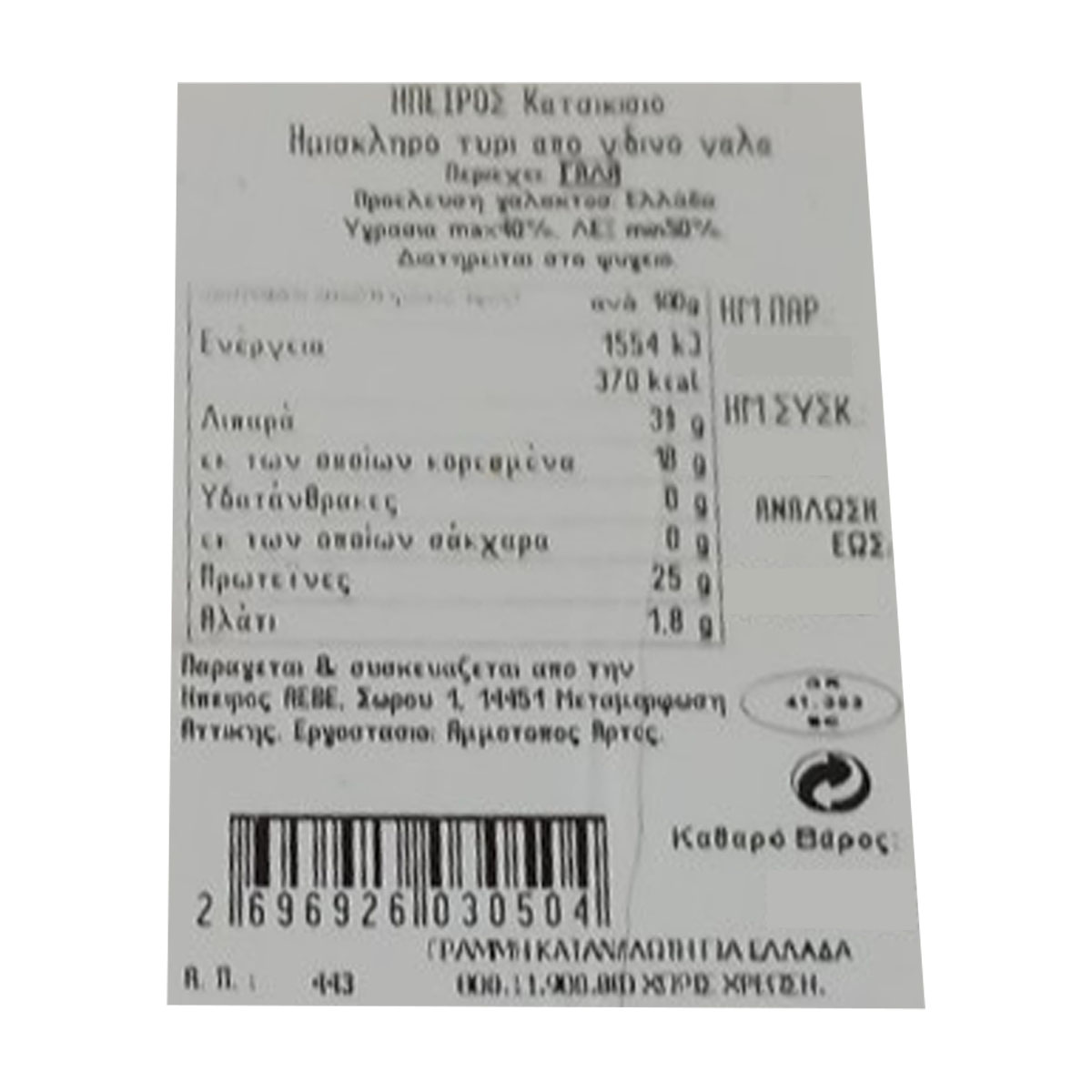 Ήπειρος Τυρί Ημίσκληρο Κατσικίσιο 31% Φρατζόλα