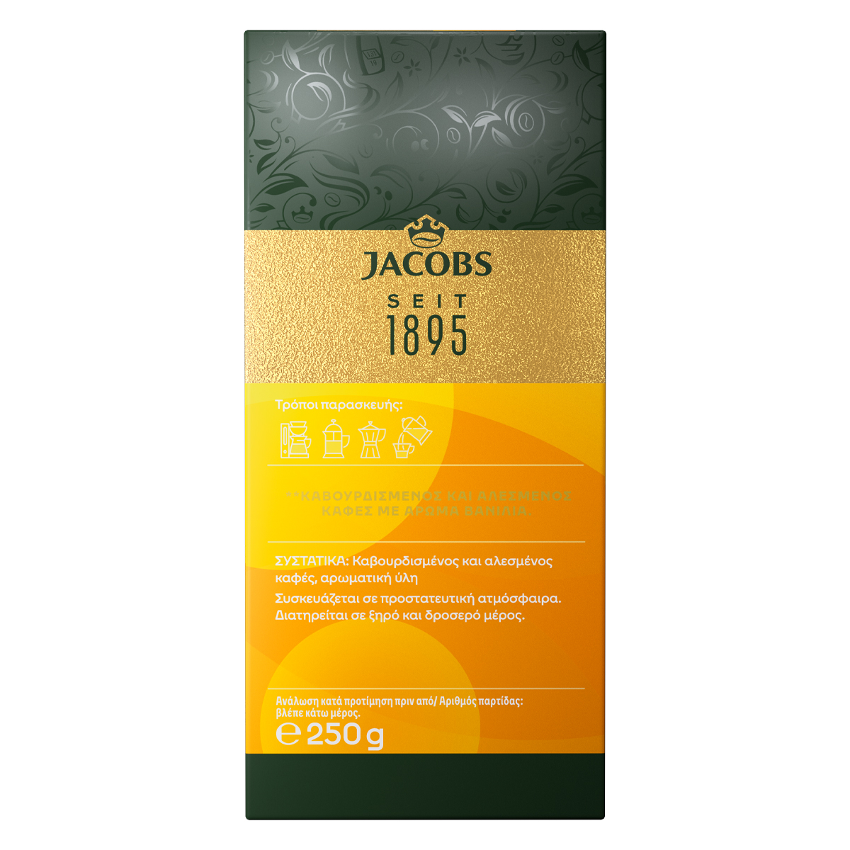 Ποιοτικός καφές φίλτρου JACOBS με γλυκιά, λεπτή γεύση μαύρης βανίλιας που αιχμαλωτίζει τις αισθήσεις.