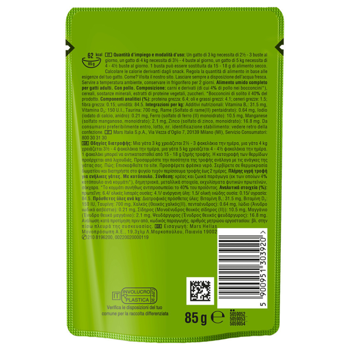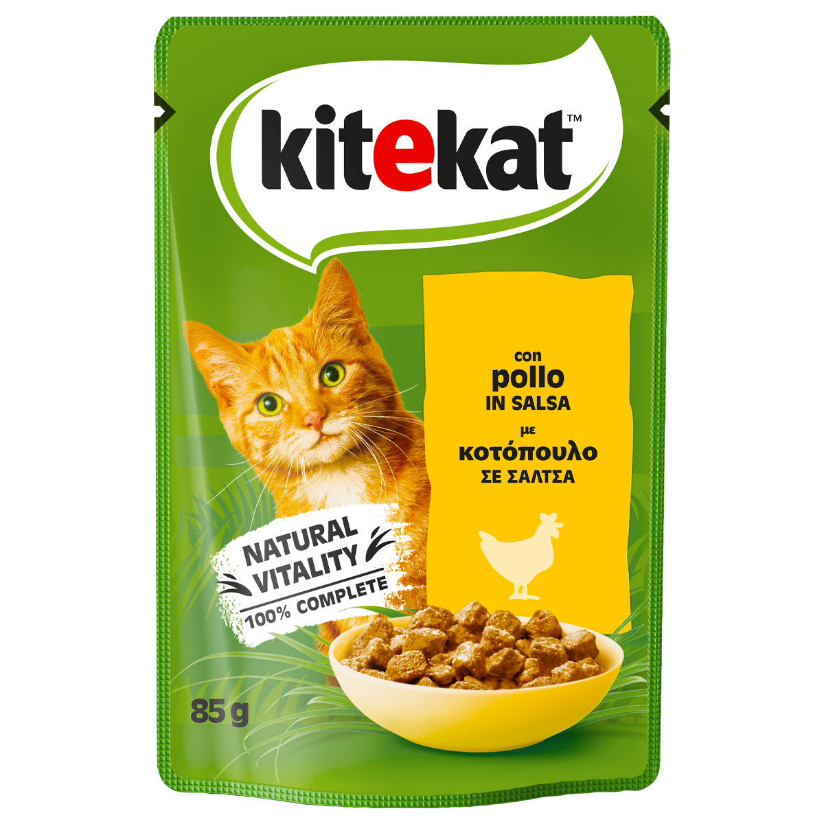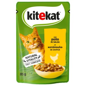KITEKAT® FRESH PACK Φακελάκι με Κοτόπουλο σε Σάλτσα 85g. Η τροφή Kitekat με τη φόρμουλα Natural Vitality καλύπτει κάθε ανάγκη της γάτας σας για τις καθημερινές της περιπέτειες. 100% πλήρη και ισορροπημένα γεύματα σε βολική συσκευασία. Χωρίς πρόσθετα τεχνητά αρώματα, χωρίς πρόσθετα συντηρητικά και χωρίς πρόσθετες τεχνητές χρωστικές. Η τροφή είναι τεμαχισμένη σε μπουκιές και φτιαγμένη με ποιοτικά υλικά, ενώ η φόρμουλα Natural Vitality παρέχει όλα τα σημαντικά θρεπτικά συστατικά και τις βιταμίνες, προκειμένου η γάτα σας να ζει την περιπέτεια στο έπακρο.