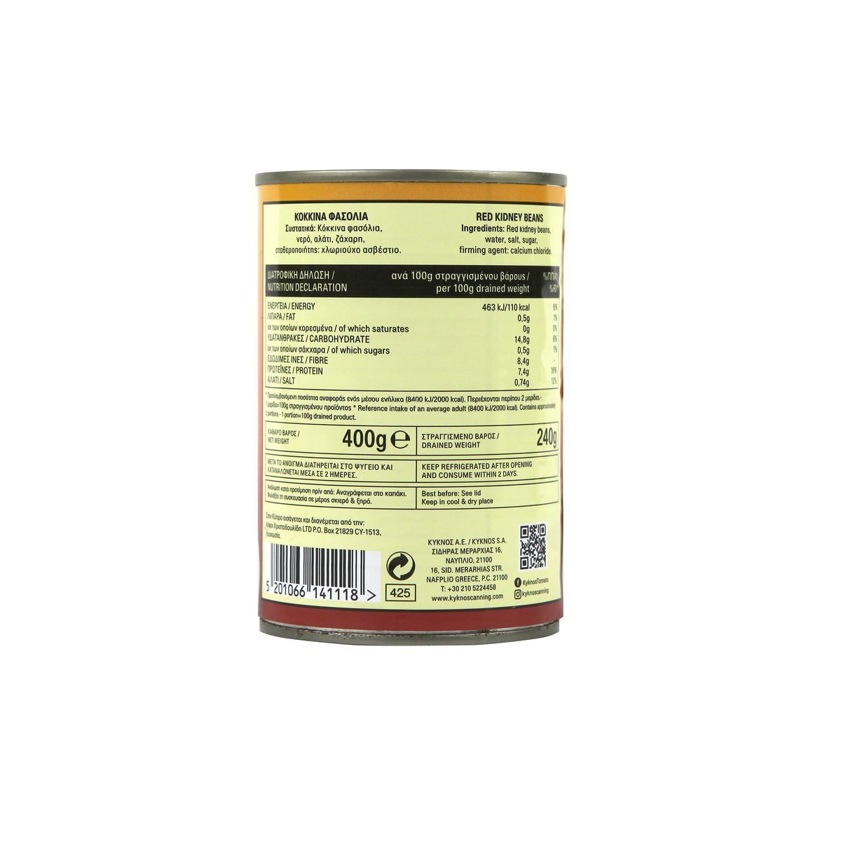 Κόκκινα φασόλια για υγιεινό φαγητό στη στιγμή! Πλούσιο σε εδώδιμες ίνες! Ιδανικό για σαλάτα, με αυγά για πρωινό, ακόμα και βάση για σπιτικό vegan burger και έθνικ μαγειρικές δημιουργίες. Σε μεταλλική συσκευασία 400g με εύκολο άνοιγμα.