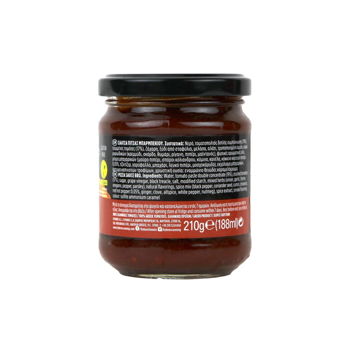 Μια γευστκή σάλτσα πίτσας που φτιάχνεται από 100% ελληνικές φρέσκες τομάτες. Έχει πλούσια καπνιστή γεύση BBQ και διάφορα μυρωδικά, χωρίς γλουτένη, χρώματα και τεχνητά αρώματα. Αναδεικνύει τη ζύμη της πίτσας και δένει με όλα τα toppings. Κατάλληλη για vegans, vegetarians & για όσους νηστεύουν. Είναι έτοιμη για χρήση.