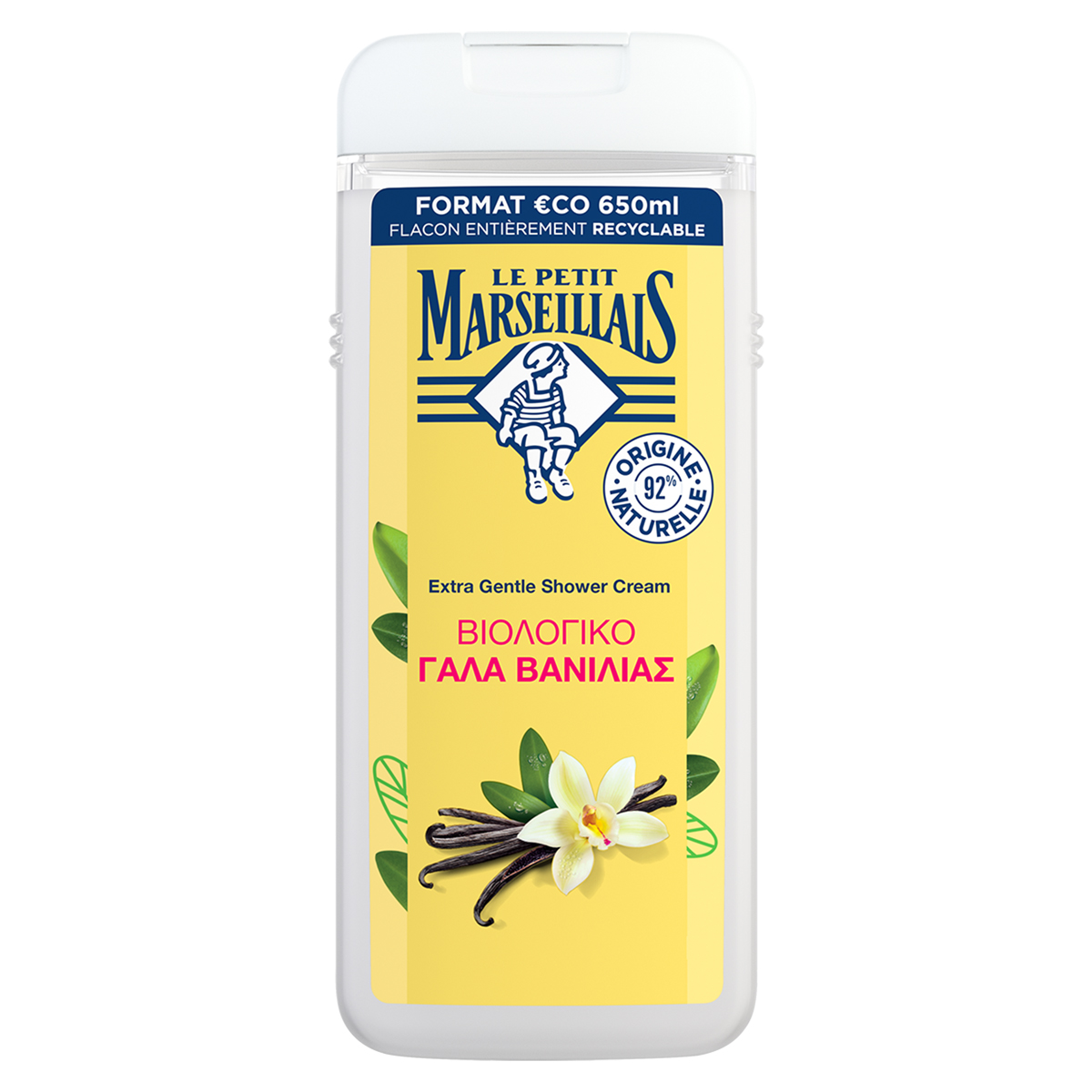 Le Petit Marseillais® Θρεπτικό Κρεμοντούς Με Γάλα Βανίλιας 650 ml. Το Le Petit Marseillais κρεμοντούς με γάλα βανίλιας καθαρίζει απαλά την επιδερμίδα σας. Ο απαλός και εύκολος στο ξέβγαλμα αφρός του αποκαλύπτει ένα ντελικάτο και υπέροχο γλυκό άρωμα. Η επιδερμίδα σας είναι απαλή και ενυδατωμένη.* Ουδέτερο PH για την επιδερμίδα.* Δερματολογικά ελεγμένο.* Βάση καθαρισμού φυτικής προέλευσης και βιοδιασπώμενο .* Τα συστατικά της βάσης καθαρισμού είναι εύκολα βιοδιασπώμενα