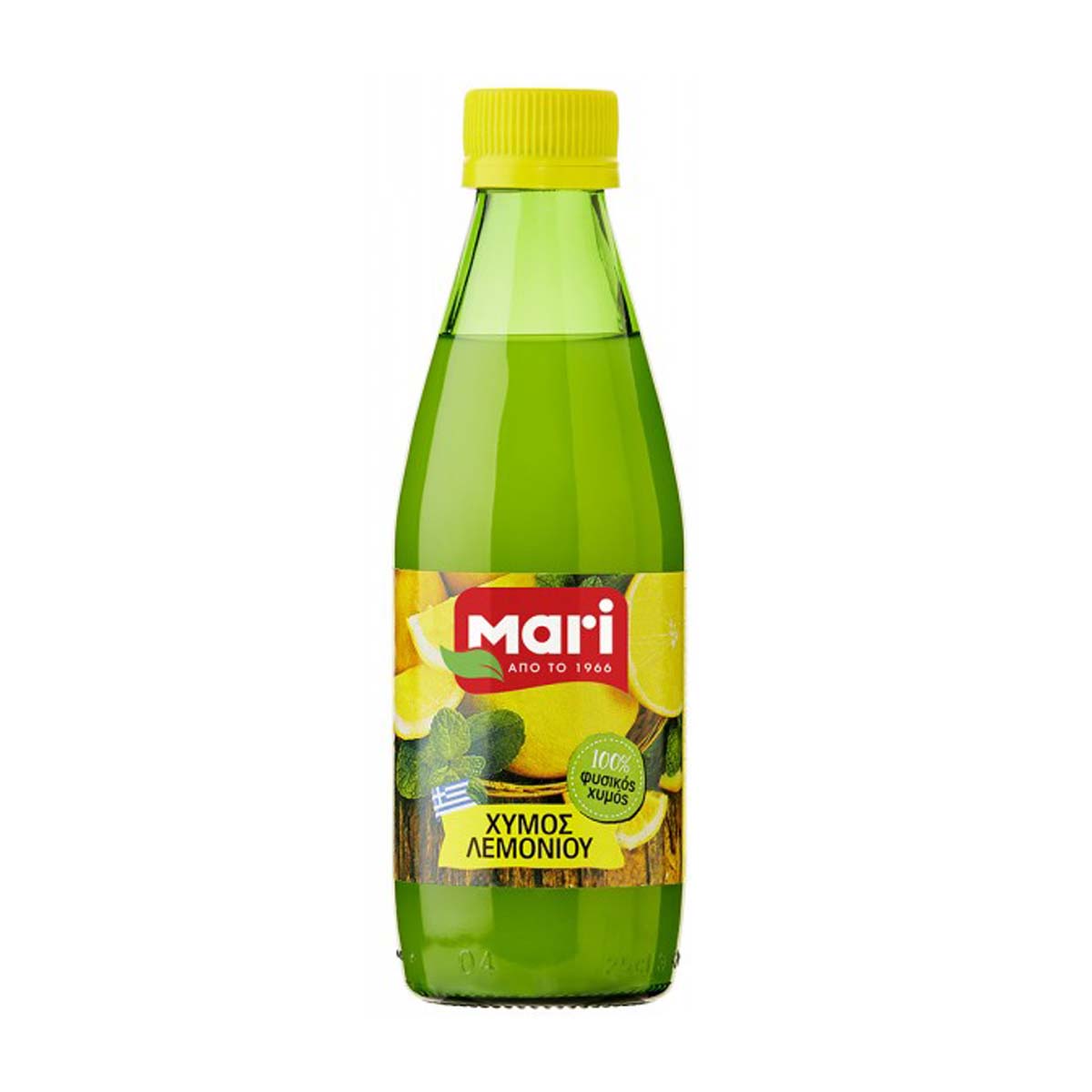 Χύμος λεμονιού από συμπυκνωμένο χυμό (99,7%), ρυθμιστής οξύτητας: κιτρικό οξύ. Συντηρητικό: Βενζοικό νάτριο Ε211 (0,1%).