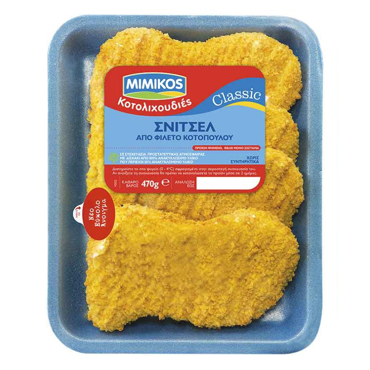 Παναρισμένα φιλέτα κοτόπουλου έτοιμα για ψήσιμο ή τηγάνισμα. Τραγανά και νόστιμα από φιλέτο που έχει μαριναριστεί με μυρωδικά. Θα είναι έτοιμα να τα απολαύσετε μέσα σε λίγα λεπτά.