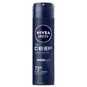 Το αντιιδρωτικό spray NIVEA MEN DEEP προστατεύει την επιδερμίδα από τον ιδρώτα και παρέχει αίσθηση καθαρής επιδερμίδας. Η σύνθεσή του περιέχει Black Carbon, ο οποίος δρα αποτελεσματικά κατά των βακτηρίων ενώ παράλληλα παρέχει αξιόπιστης αποτελεσματική προστασία 72 ωρών. Έχει αρρενωπό Deep dark wood άρωμα που διαρκεί για να αφήνει αίσθηση καθαριότητας και φρεσκάδας όλη μέρα, ενώ δεν αφήνει ορατά μαύρα υπολείμματα! Συμβατότητα με την επιδερμίδα δερματολογικά ελεγμένη.