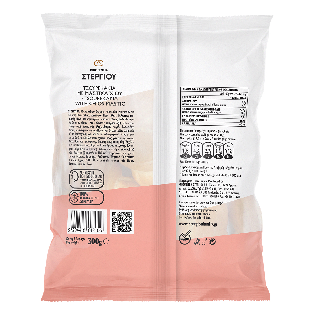 Με μαστίχα Χίου. Φτιαγμένο με τα πιο αγνά υλικά και πλεγμένο ένα ένα στο χέρι. Ένα πραγματικά εκλεκτό προϊόν που μπορείτε να συνδυάσετε με τον καφέ ή οποιοδήποτε άλλο ζεστό ρόφημα, και να αναδείξετε τα δυνατά του αρώματα.