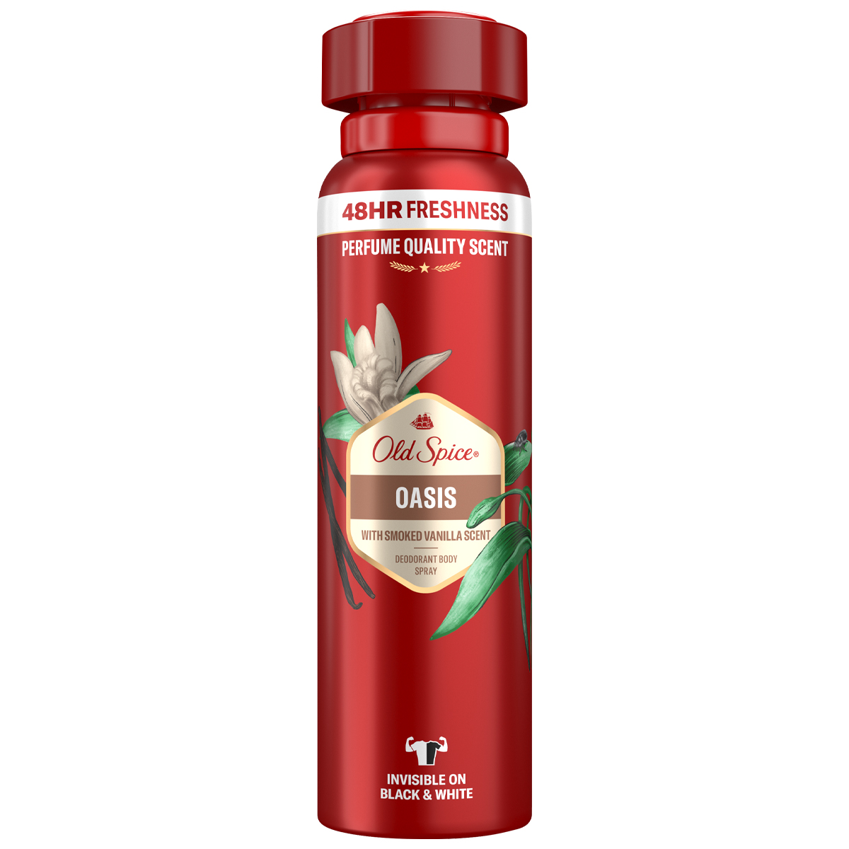 Απολαύστε τη σιγουριά 48 ωρών φρεσκάδας και ευχάριστης οσμής με το αποσμητικό σπρέι σώματος Old Spice για άντρες χωρίς αλουμίνιο. Χάρη στην καταπολέμηση της οσμής και τα αρώματα υψηλής ποιότητας, καταπολεμά ακόμη και την πιο βαριά κακοσμία με μια υπέροχη ευωδία, ενώ παραμένει αόρατο σε μαύρα και άσπρα ρούχα. Και σε αυτό το επίπεδο ξέγνοιαστης φρεσκάδας, μπορείτε να επικεντρωθείτε σε πιο αξιόλογες επιδιώξεις όπως το κλείσιμο συμφωνιών ή η εκπαίδευση των δελφινιών για να μιλούν.Δοκιμάστε το άρωμα υψηλής ποιότητας του Oasis και ξεκινήστε το ταξίδι για τον παράδεισο Το εκλεκτό άρωμα της καπνιστής γλυκιάς βανίλιας και του πλούσιου κεχριμπαριού αναμιγνύει φρουτώδη αρώματα με βατόμουρο για να δημιουργήσει ένα άρωμα που μοιάζει με απολαυστικές διακοπές για τη μύτη σας.