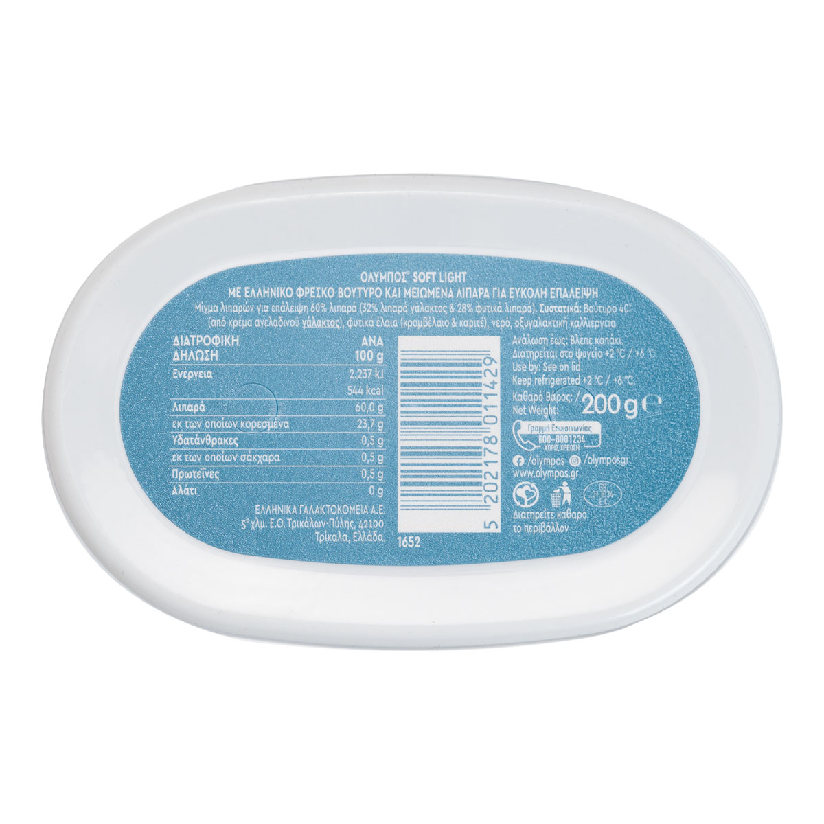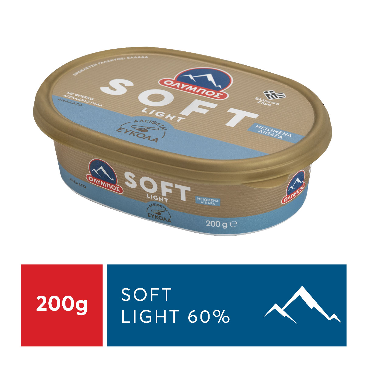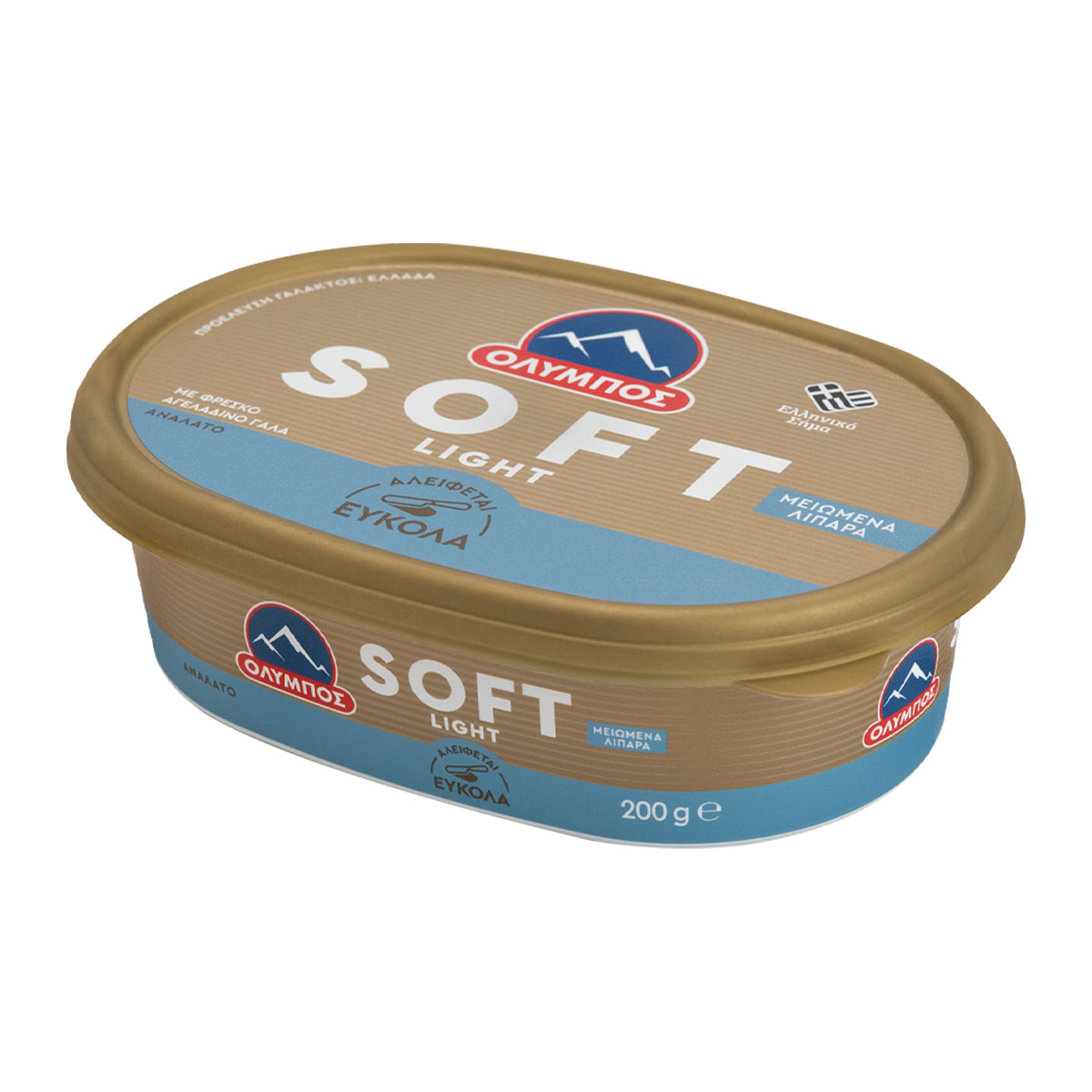 Tο soft αγελάδος ΟΛΥΜΠΟΣ παράγεται από φρέσκo ελληνικό βούτυρο, με μεράκι και σεβασμό στην παράδοση. Ιδανικό για τις ευχάριστες ώρες του πρωινού καθώς αλείφεται πολύ εύκολα ακόμα και παγωμένο, αλλά και στη μαγειρική και στη ζαχαροπλαστικήκλειστικά από ελληνικό φρέσκο γάλα με μεράκι και σεβασμό στην παράδοση. Δεν περιέχει αλάτι και είναι ιδανικό για κάθε χρήση στη μαγειρική και τη ζαχαροπλαστική.