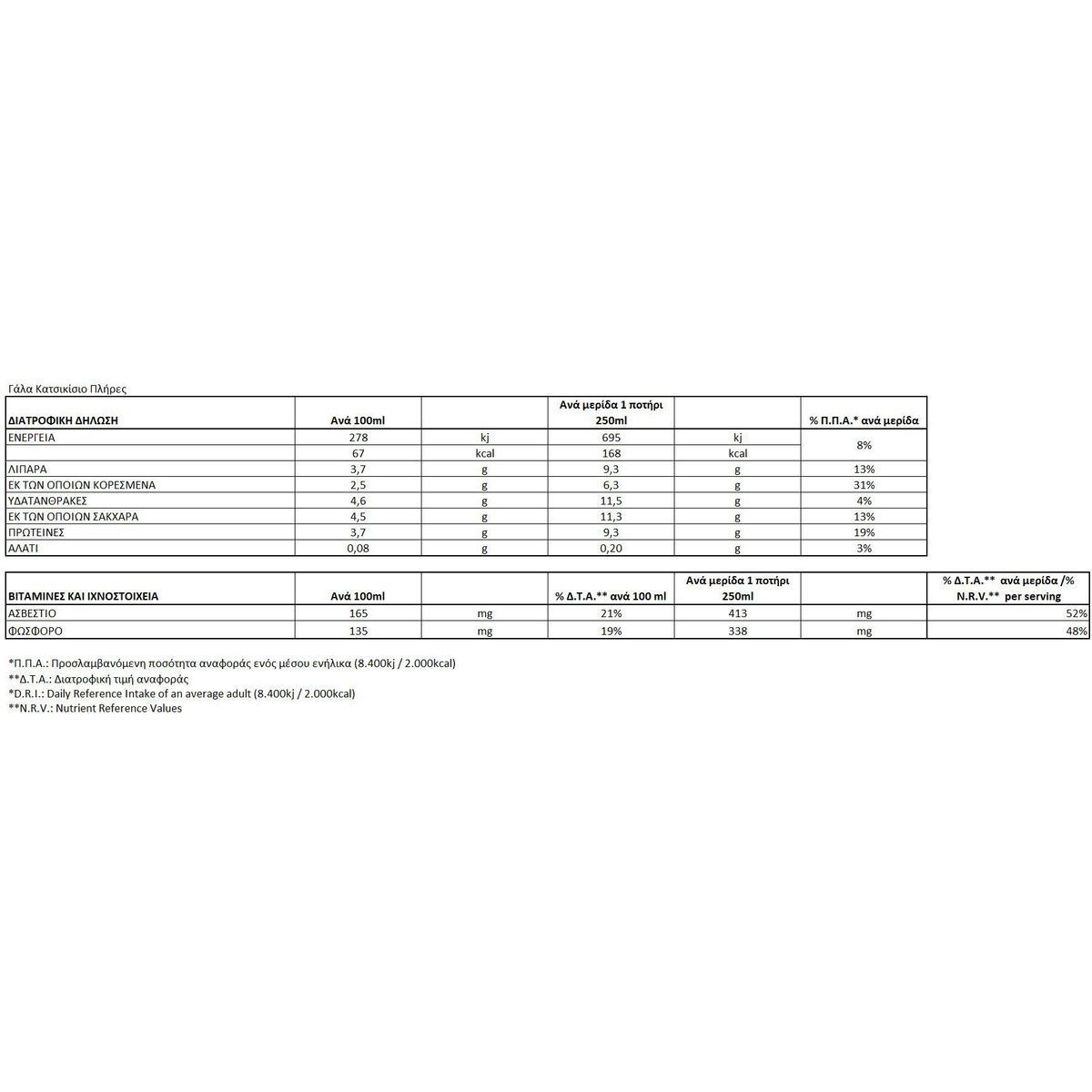 | Ασβέστιο (ανά 100g) | 165 mg |