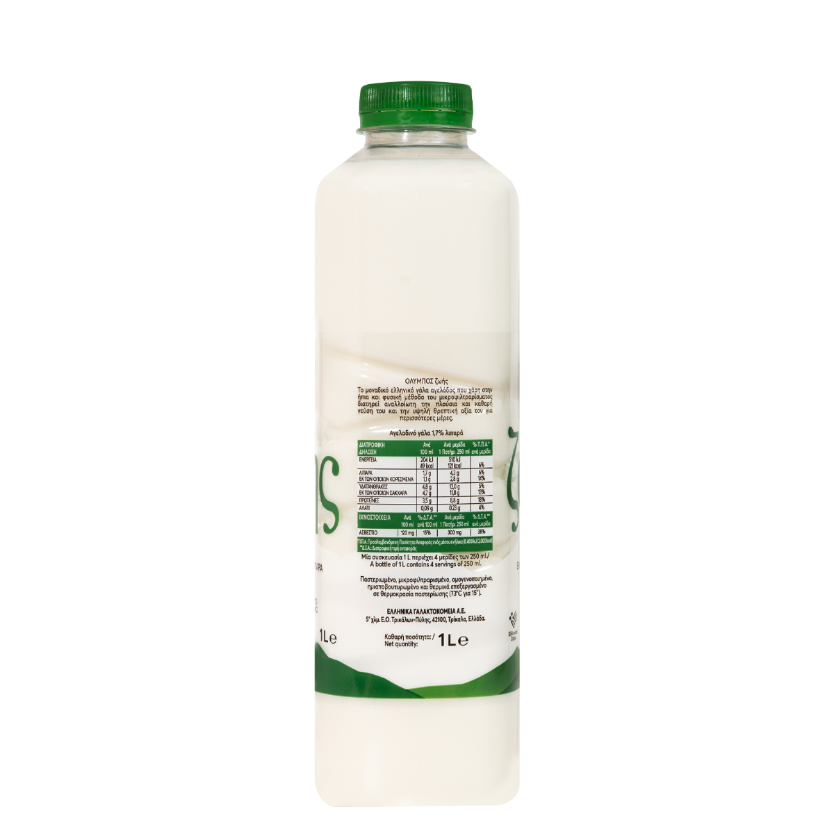 Το γάλα ζωής ΟΛΥΜΠΟΣ με 1,7% λιπαρά παράγεται από 100% ελληνικό φρέσκο γάλα.