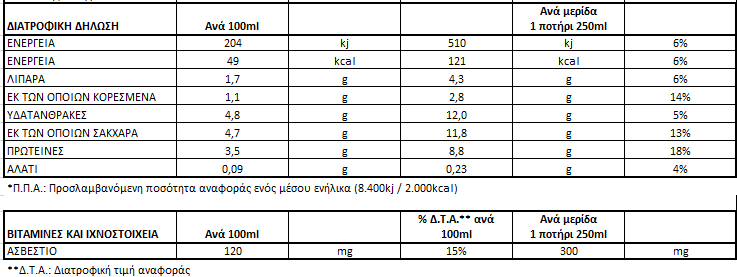 | Ασβέστιο (ανά 100g) | 120 mg |