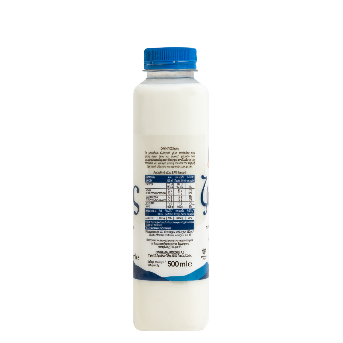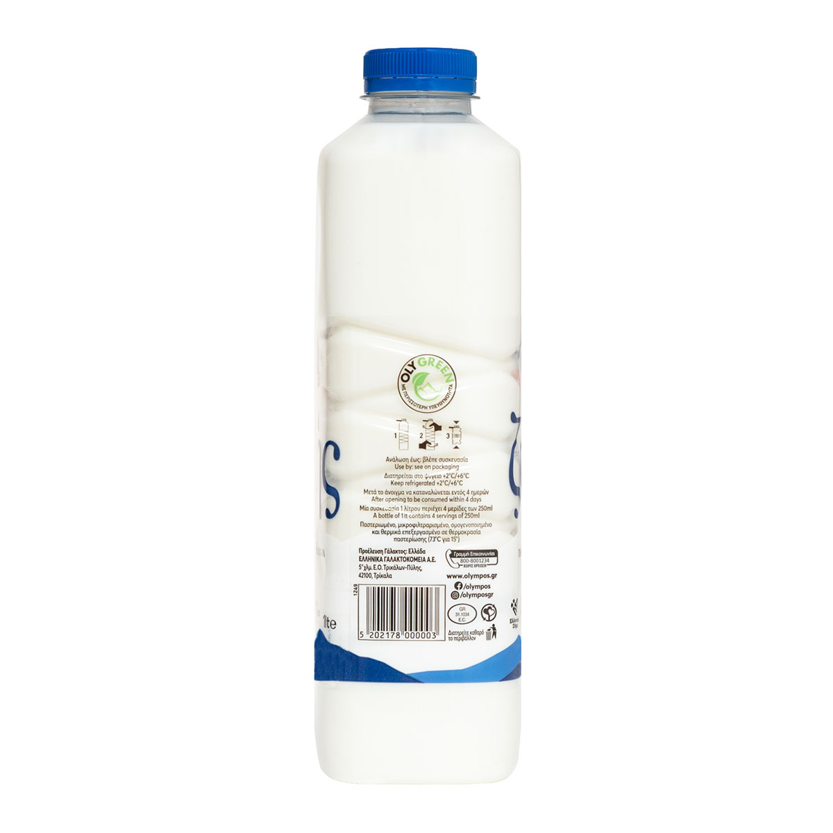 Το γάλα ζωής ΟΛΥΜΠΟΣ με 3,7% λιπαρά παράγεται από 100% ελληνικό φρέσκο γάλα.
