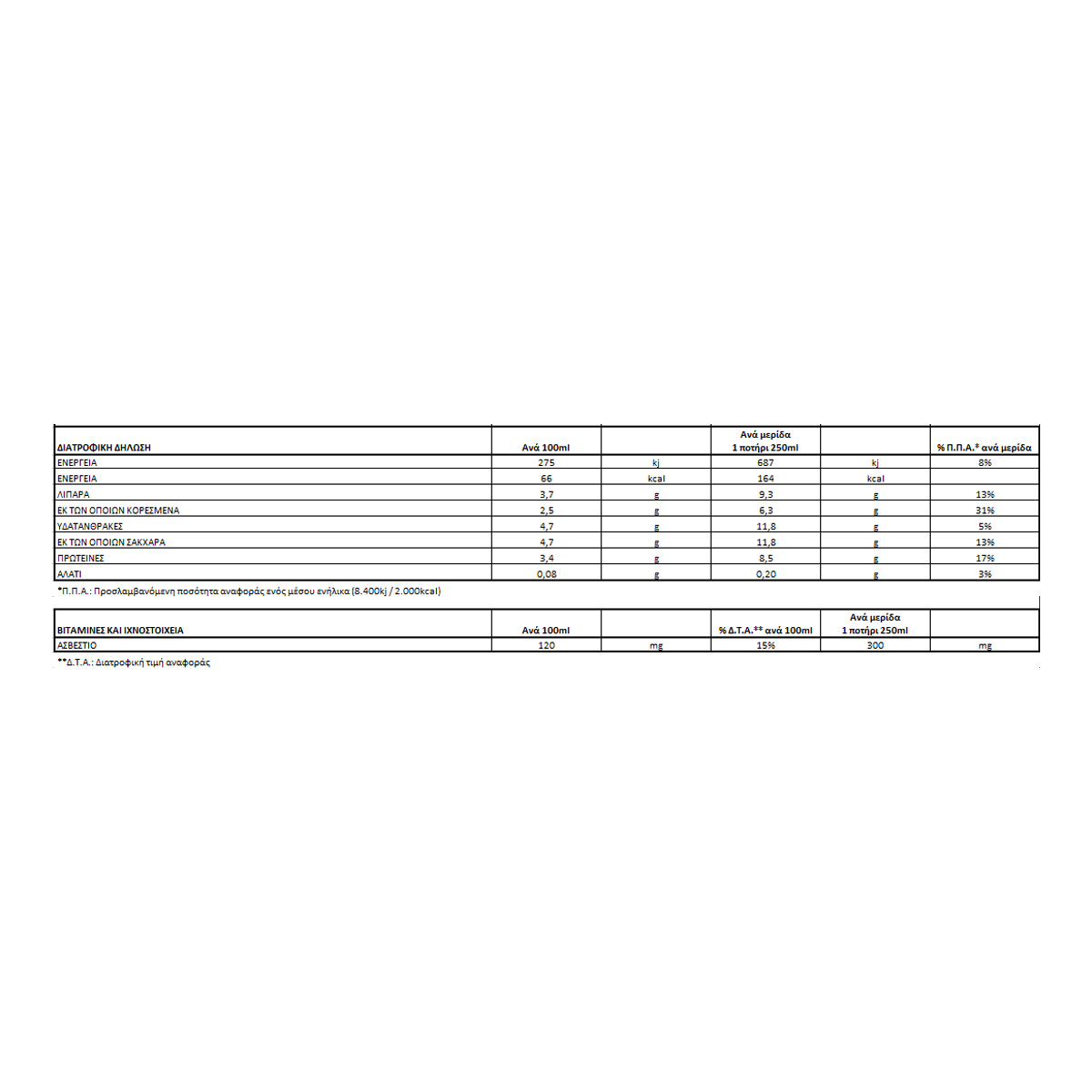 | Ασβέστιο (ανά 100g) | 120 mg |