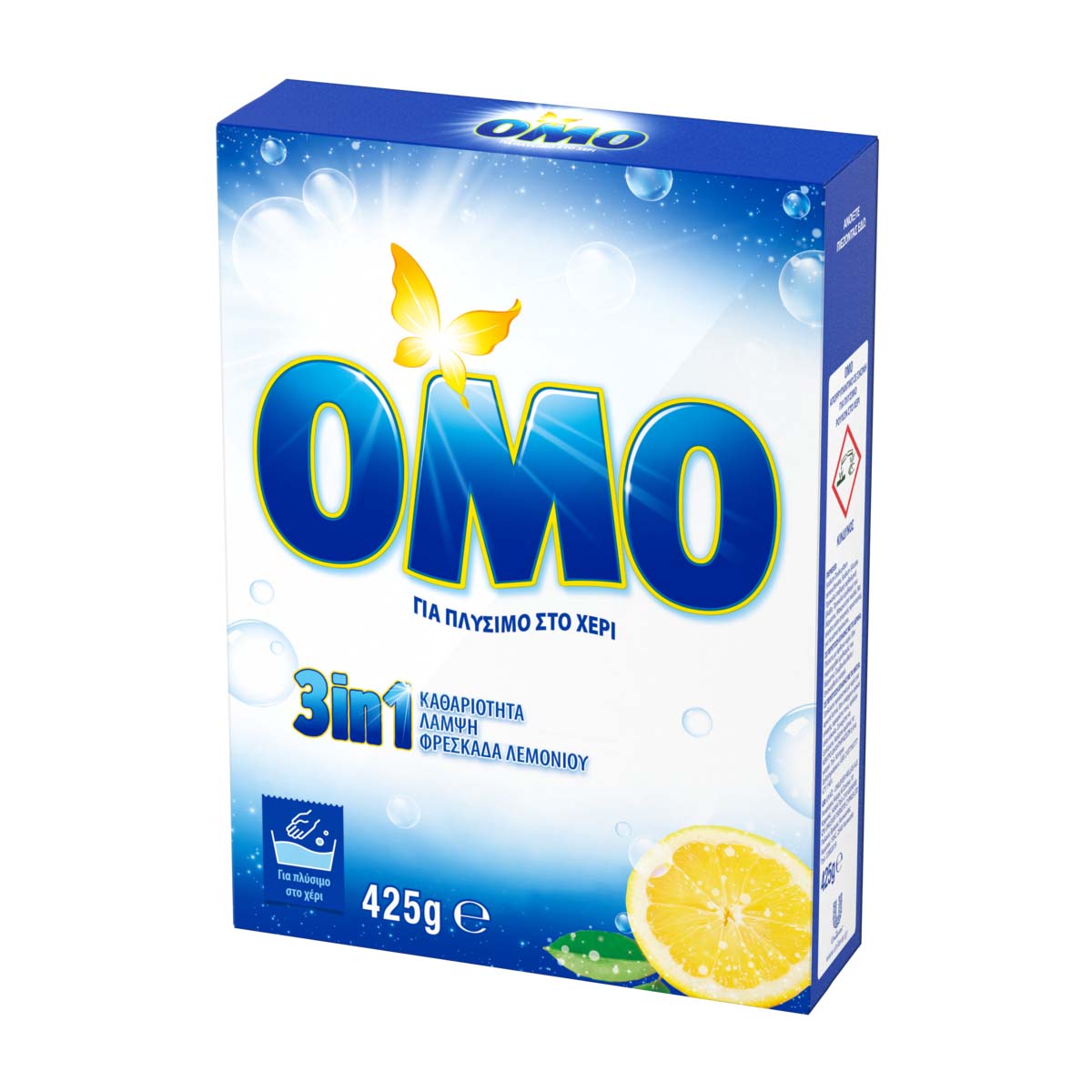 Το ΟΜΟ είναι η ιδανική λύση για πλύσιμο στο χέρι. Χάρη στην προηγμένη σύνθεσή του εξαφανίζει εύκολα και γρήγορα ακόμα και τους πιο δύσκολους λεκέδες. Χρησιμοποιείστε ΟΜΟ για το καθημερινό πλύσιμο στο χέρι και απολαύστε ρούχα αστραφτερά, λαμπερά και γεμάτα φρεσκάδα λεμονιού.