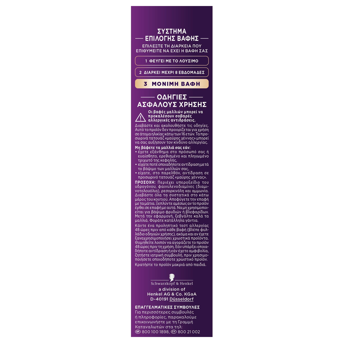 Αυτή η απόχρωση δεν είναι κατάλληλη για κάλυψη λευκών. Πριν τη εφαρμογή, παρακαλούμε διαβάστε προσεκτικά τις ΟΔΗΓΙΕΣ ΑΣΦΑΛΟΥΣ ΧΡΗΣΗΣ. Μη λούζετε τα μαλλιά σας 24 - 48 ώρες πριν τη βαφή. Μην αφήνετε το προϊόν να έρθει σε επαφή με τα ρούχα ή συνθετικά υλικά γιατί οι λεκέδες είναι δύσκολο να καθαριστούν. Εφαρμόστε το προϊόν αμέσως μετά την ανάμιξη. Μη κρατάτε ποτέ μίγμα που τυχόν έχει περισσέψει - είναι ακατάλληλο για επόμενη χρήση.