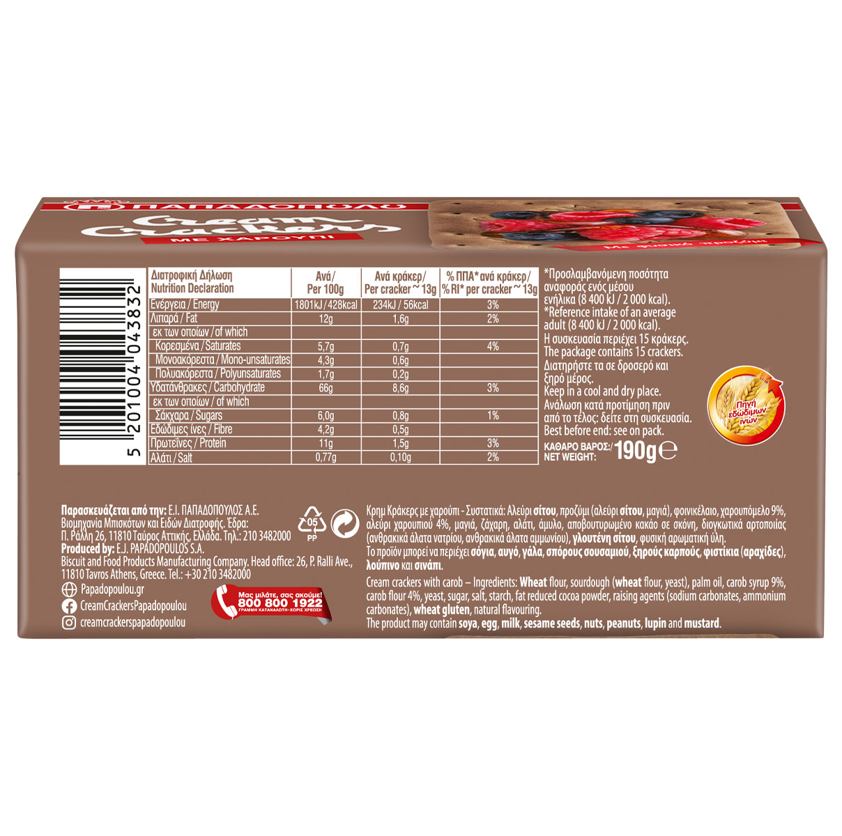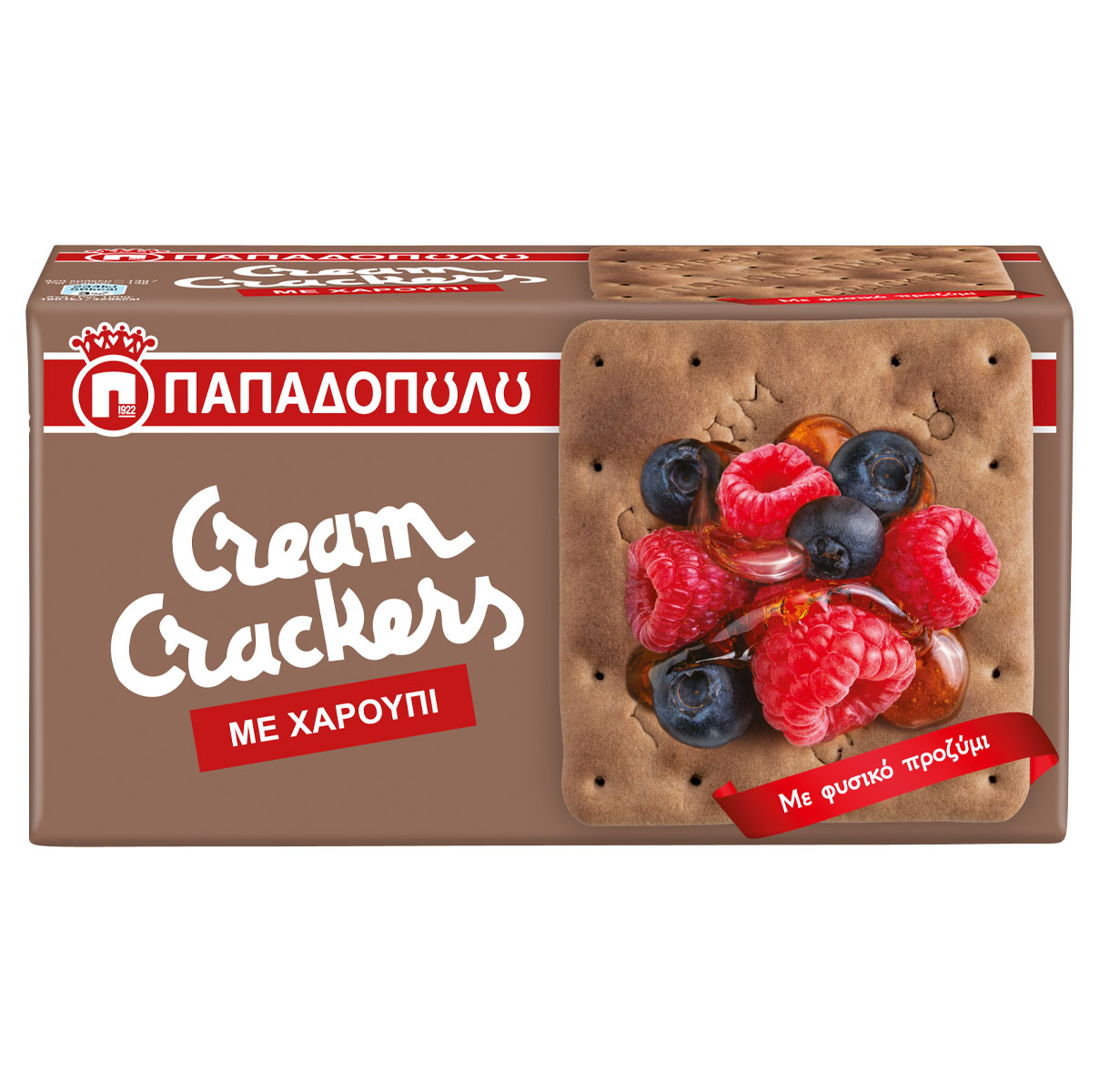 Ζυμωμένα με φυσικό προζύμι, ανάλαφρα, τραγανά και με την ξεχωριστή γεύση που προκύπτει από το χαρούπι και το χαρουπόμελο, τα νέα Cream Crackers με Χαρούπι είναι η ιδανική πρόταση σνακ πριν από κάθε μας δραστηριότητα, κατά τη διάρκεια ενός ταξιδιού αλλά και όταν απλά θέλουμε να απολαύσουμε «κάτι» γευστικό και ελαφρύ που θα μας «κρατήσει».