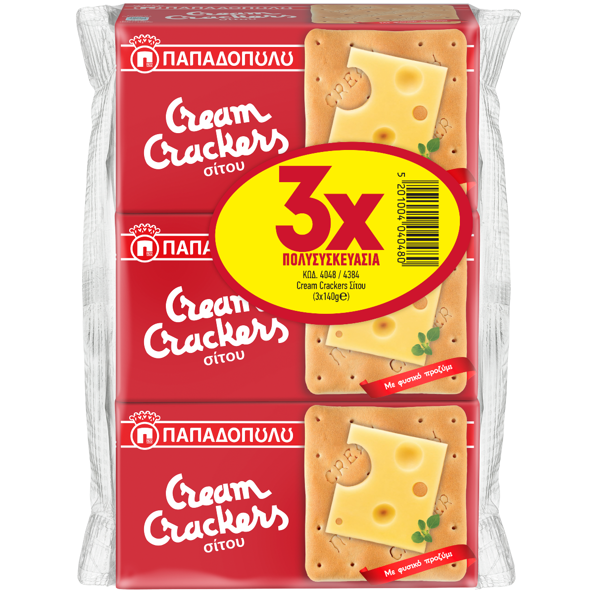 Η κλασική γεύση Cream Crackers που μας συνοδεύει από το 1935! Είναι χορταστικά, γιατί φτιάχνονται με δημητριακά και φυσικό προζύμι, αλλά και ανάλαφρα γιατί αποτελούνται από 1296 φύλλα λεπτής ζύμης! Απολαύστε τα σκέτα στο ταξίδι, στην εκδρομή, στο δρόμο για τη δουλειά, αλλά και μαζί με απεριόριστους γευστικούς συνδυασμούς σε αλμυρή ή γλυκιά εκδοχή.