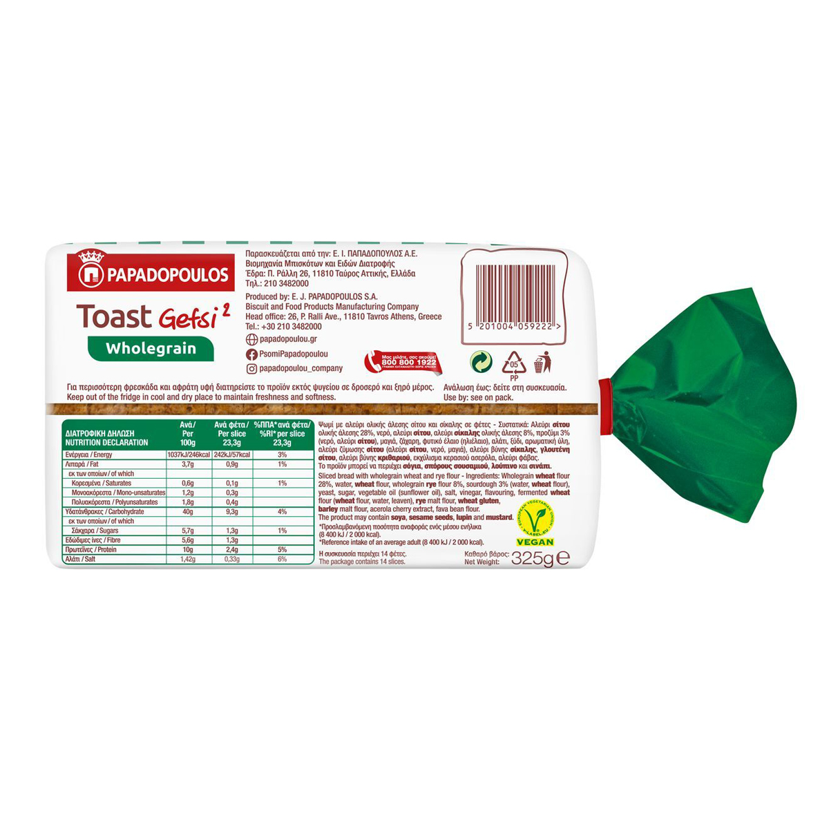 Το αγαπημένο ψωμί του τοστ! Για εσάς που αναζητάτε ένα νόστιμο, αφράτο ψωμί του τοστ με την θρεπτική αξία της ολικής άλεσης, τότε επιλέγετε το ”Τοστ Γεύση2 Ολικής Άλεσης”. Δώστε στα τοστάκια σας τη γεύση αλλά και τη θρεπτική αξία που θέλετε με το ψωμί του “Τοστ Γεύση2 Ολικής Άλεσης”. Η γεύση στο τετράγωνο ψωμί του τοστ που απογειώνει το αγαπημένο σας snack!