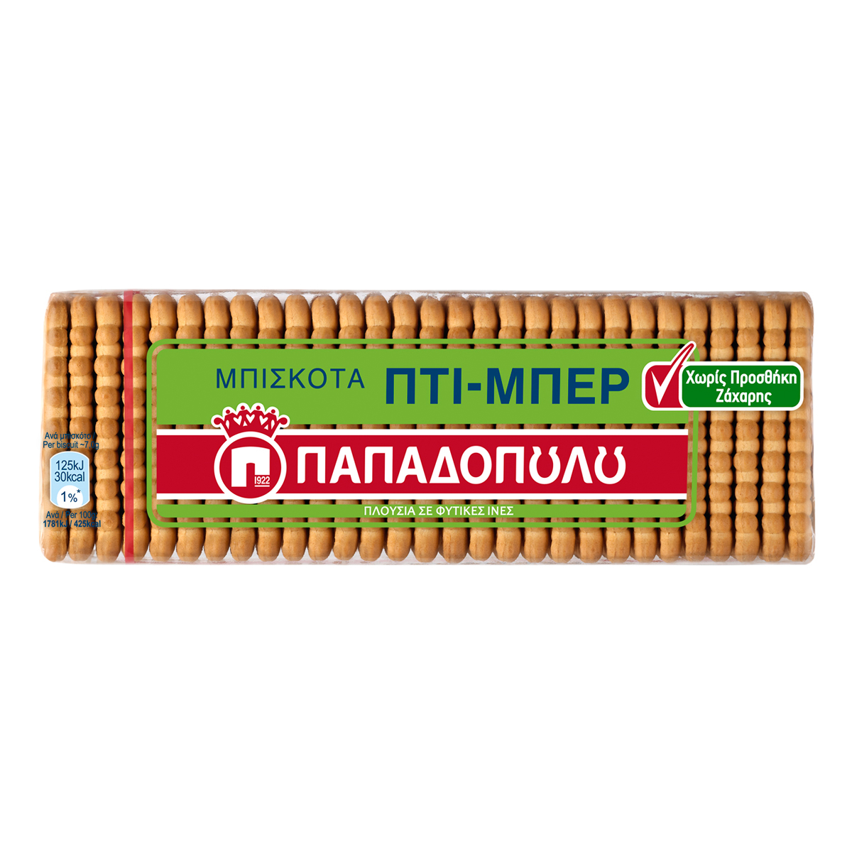 Η οικογένεια των αγαπημένων Πτι-Μπερ Παπαδοπούλου μεγαλώνει και υποδέχεται τα νέα μπισκότα Πτι-Μπερ Χωρίς Προσθήκη Ζάχαρης .Τώρα, μπορείτε να απολαμβάνετε όλη την αυθεντική γεύση των Πτι-Μπερ Παπαδοπούλου, σε ένα μπισκότο υψηλής διατροφικής αξίας , χωρίς προσθήκη ζάχαρης , το οποίο περιέχει φυσικά σάκχαρα και είναι πλούσιο σε φυτικές ίνες .Τα Πτι-Μπερ Παπαδοπούλου Χωρίς Προσθήκη Ζάχαρης γίνονται ο καθημερινός σας σύμμαχος στην εφαρμογή μιας ισορροπημένης διατροφής στο σπίτι, το γραφείο, το σχολείο ή ακόμα και την εκδρομή!