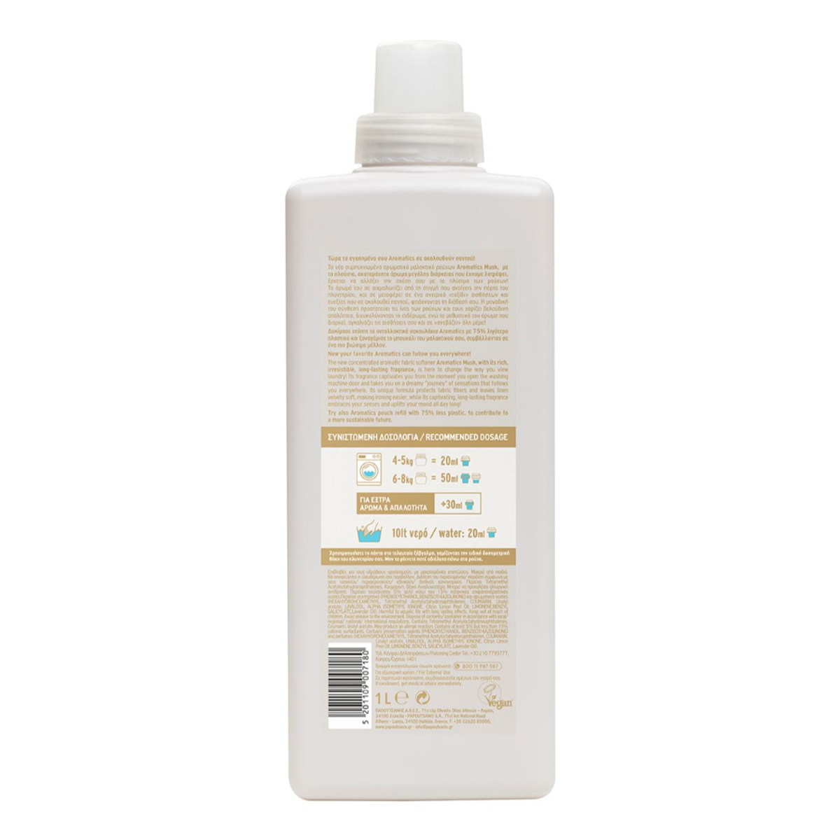 Το νέο συμπυκνωμένο αρωματικό μαλακτικό ρούχων Aromatics Musk, με τo πλούσιο, ακαταμάχητο άρωμα μεγάλης διάρκειας που έχουμε λατρέψει, έρχεται να αλλάξει την σχέση σου με το πλύσιμο των ρούχων! Το άρωμά του σε αιχμαλωτίζει από τη στιγμή που ανοίγεις την πόρτα του πλυντηρίου και σε μεταφέρει σε ένα ονειρικό «ταξίδι» αισθήσεων και ευεξίας που σε ακολουθεί παντού, φτιάχνοντας τη διάθεσή σου. Η μοναδική του σύνθεση προστατεύει τις ίνες των ρούχων και τους χαρίζει βελούδινη απαλότητα, διευκολύνοντας το σιδέρωμα, ενώ το μεθυστικό του άρωμα που διαρκεί, αγκαλιάζει τις αισθήσεις σου και σε «ανεβάζει» όλη μέρα!