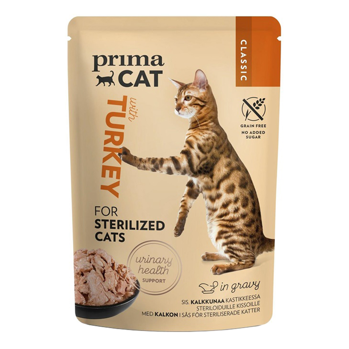 Prima Cat Υγρή Τροφή Για Στειρωμένες Γάτες Με Γαλοπούλα Σε Σάλτσα 85 gr