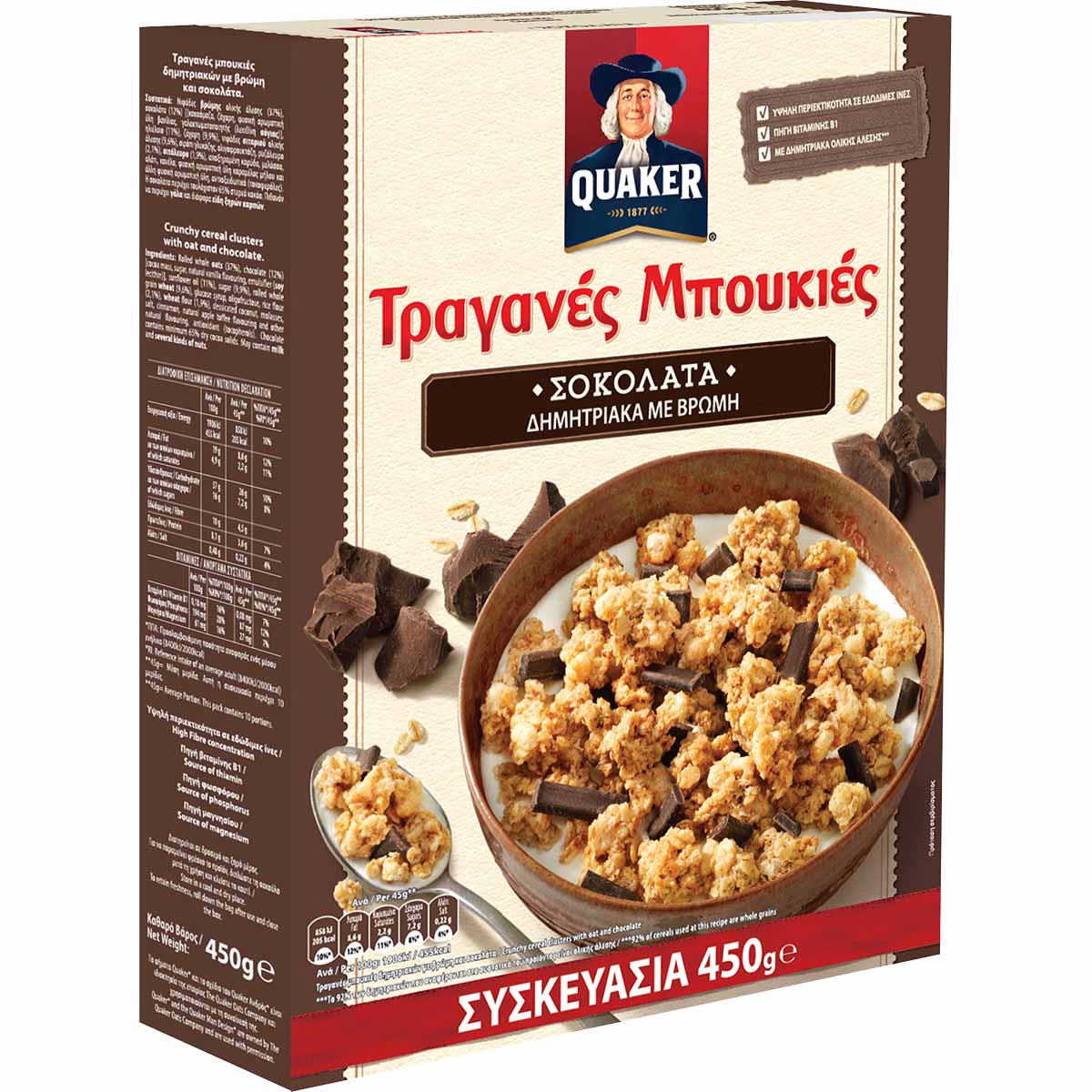 Τα Quaker, προϊόντα με μακρόχρονη ιστορία, απελευθερώνουν καθημερινά τη δύναμη της βρώμης και αποτελούν το «σύμμαχό» σας για το ιδανικό ξεκίνημα της μέρας. Η βρώμη είναι ένα δημητριακό με υψηλή περιεκτικότητα σε εδώδιμες ίνες και ταυτόχρονα αποτελεί και πηγή βιταμίνης B1. Αυτά τα πολύτιμα συστατικά φέρνουν καθημερινά στο πιάτο σας τα Quaker Τραγανές μπουκιές με βρώμη.