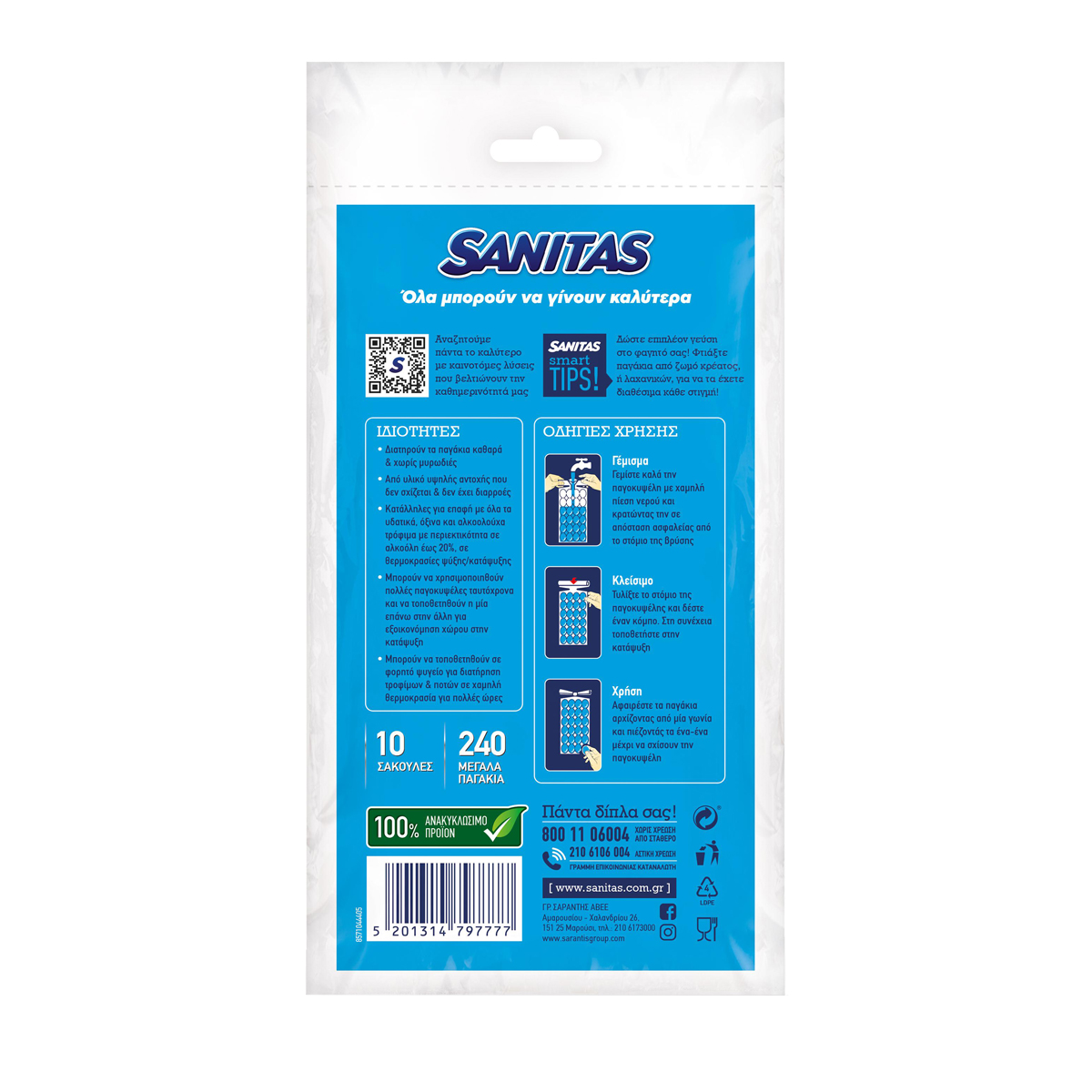 Οι δενόμενες παγοκυψέλες Sanitas διαθέτουν πρακτικό κλείσιμο που προσφέρει ασφάλεια χωρίς διαρροές για να έχετε τα παγάκια που χρειάζεστε! Από υλικό υψηλής αντοχής που δεν σχίζεται, διατηρούν τα παγάκια καθαρά και τα προστατεύουν από ανεπιθύμητες μυρωδιές. Οι παγοκυψέλες Sanitas μπορούν να τοποθετηθούν σε φορητό ψυγείο ώστε να διατηρήσετε τα τρόφιμα και τα αναψυκτικά σας δροσερά σε χαμηλή θερμοκρασία για πολλές ώρες εκτός σπιτιού. -Παγοκυψέλες με πρακτικό κλείσιμο, χωρίς διαρροές -Διατηρούν τα παγάκια καθαρά & χωρίς μυρωδιές -Από υλικό υψηλής αντοχής που δεν σχίζεται & δεν έχει διαρροές.