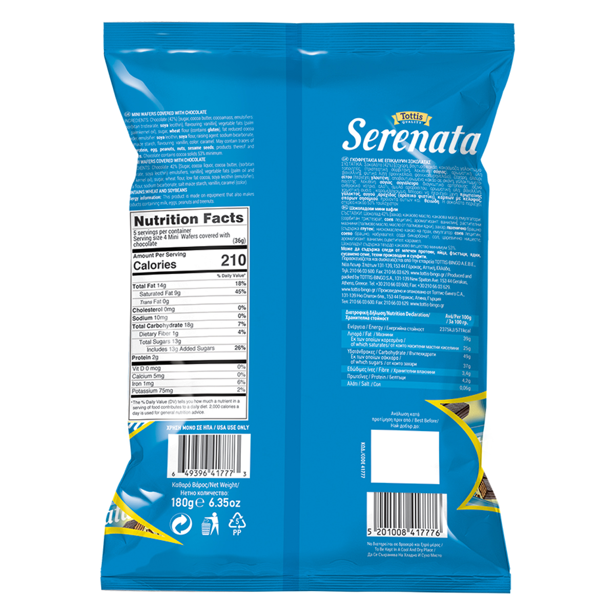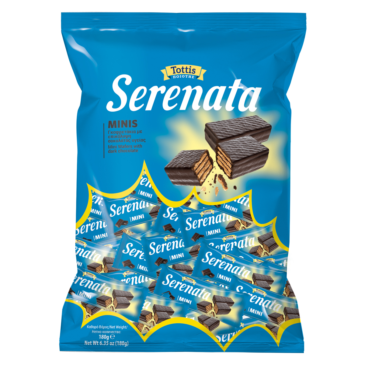 Serenata Dark Minis Γκοφρετάκια Με Σοκολάτα Υγείας Και Γέμιση Κρέμα Κακάο 180 gr