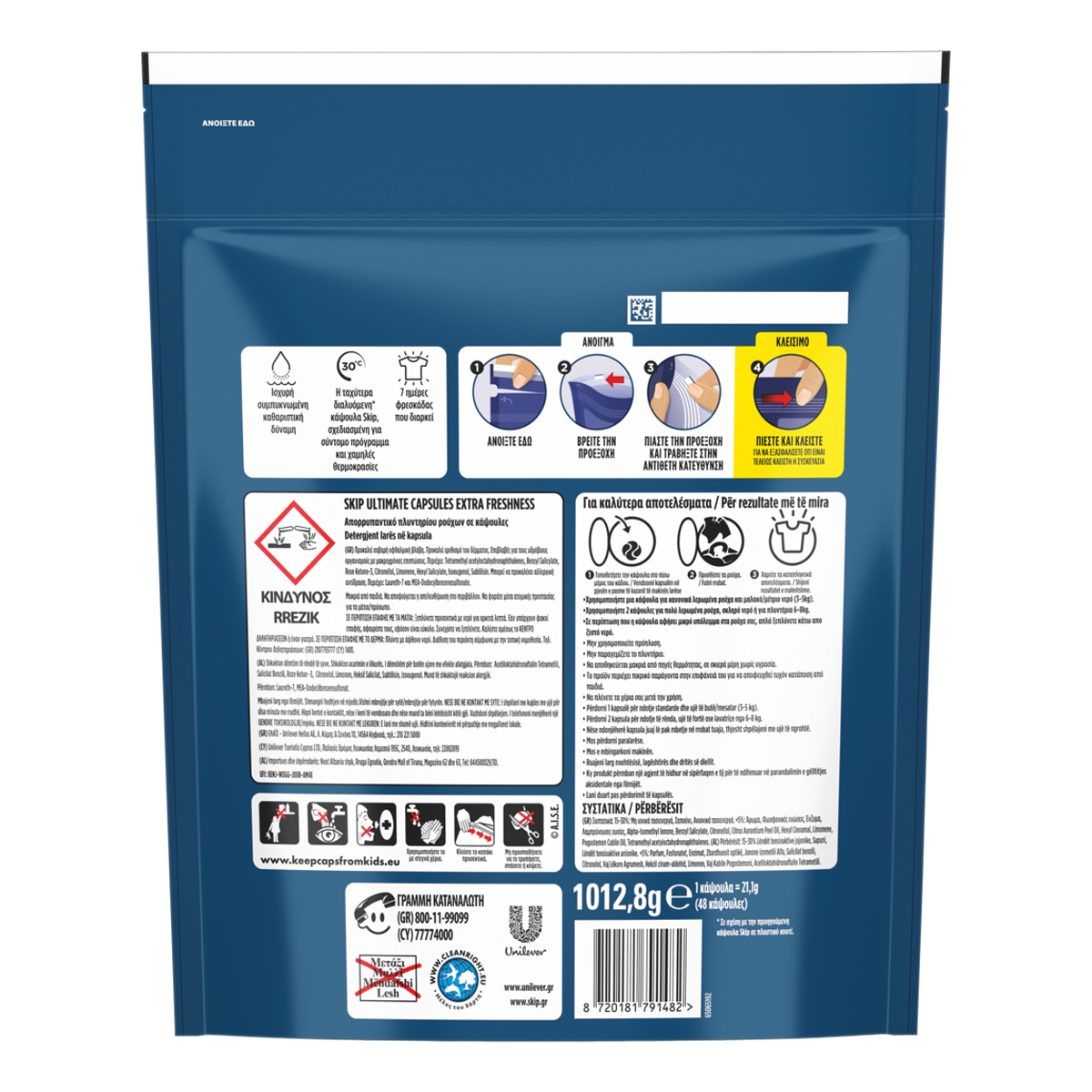 Skip Ultimate Κάψουλες Πλυντηρίου Ρούχων Extra Freshness 48 Μεζούρες 1012.8 gr