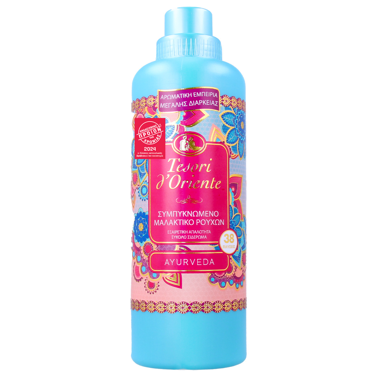 Τα μεθυστικά και ξεχωριστά αρώματα της μάρκας Tesori D'Oriente αγκαλιάζουν μοναδικά τα ρούχα και τα λευκά σας είδη. Ανακαλύψτε το άρωµα Ayurveda που περιέχει ντελικάτες νότες εσπεριδοειδών εµπλουτισµένες µε αισθησιακό πατσουλί και αιθέριο έλαιο Amla, ιδιαίτερα συστατικά που χαρίζουν ένα µοναδικό άρωµα ευεξίας και χαλάρωσης. Η κρεµώδης σύνθεση χωρίς χρωστικές του Tesori d' Oriente, αποδεσµεύει σταδιακά το άρωµα χάρη στην τεχνολογία των πολύτιµων µικροκαψουλών, διατηρώντας απαλά τα ρούχα και διευκολύνοντας έτσι το σιδέρωµά τους.