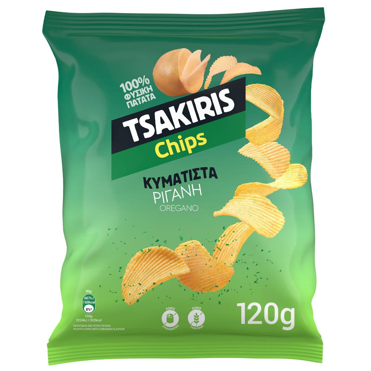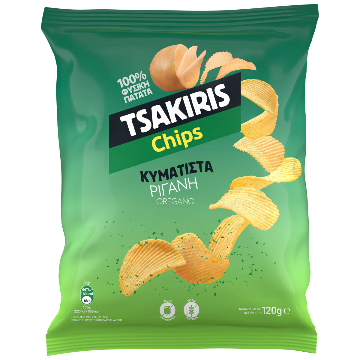Tsakiris Πατατάκια Κυματιστά Με Ρίγανη Χωρίς Γλουτένη 120 gr