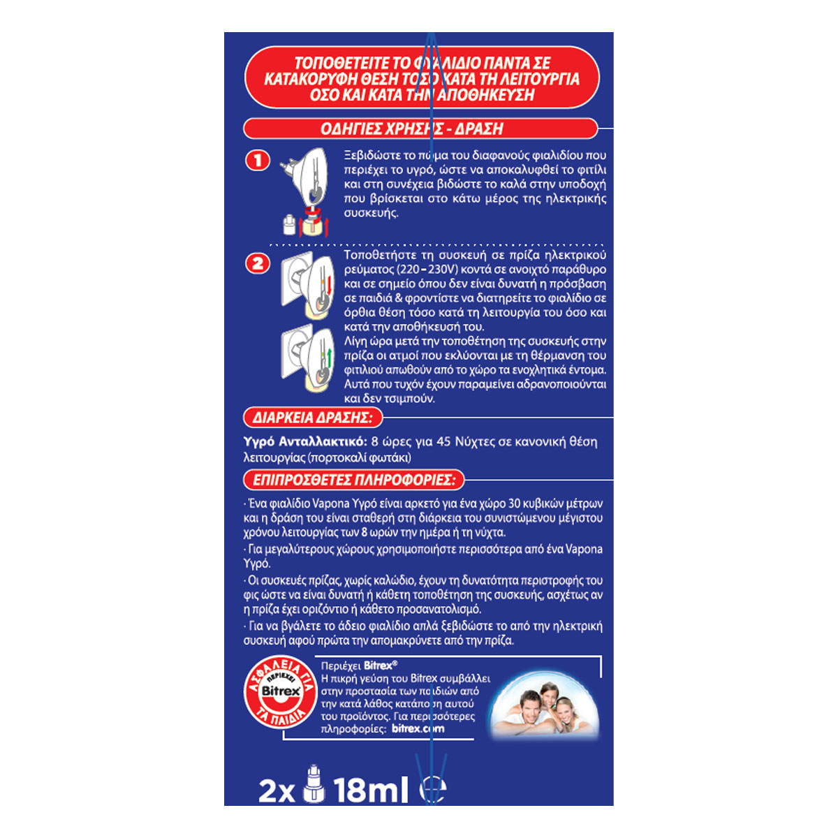 Αποτελεσματική προστασία ενάντια στα κουνούπια και στα κουνούπια τίγρης ακόμα και με ανοιχτά παράθυρα και αναμμένα φώτα. Η ειδική του φόρμουλα σας προστατεύει αποτελεσματικά από κουνούπια και κουνούπια τίγρης για έως και 45 νύχτες. Προσφέρει γρήγορη και συνεχόμενη δράση.